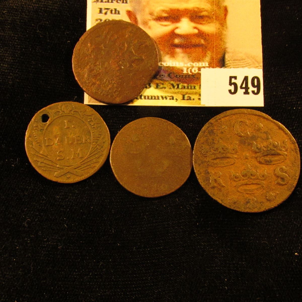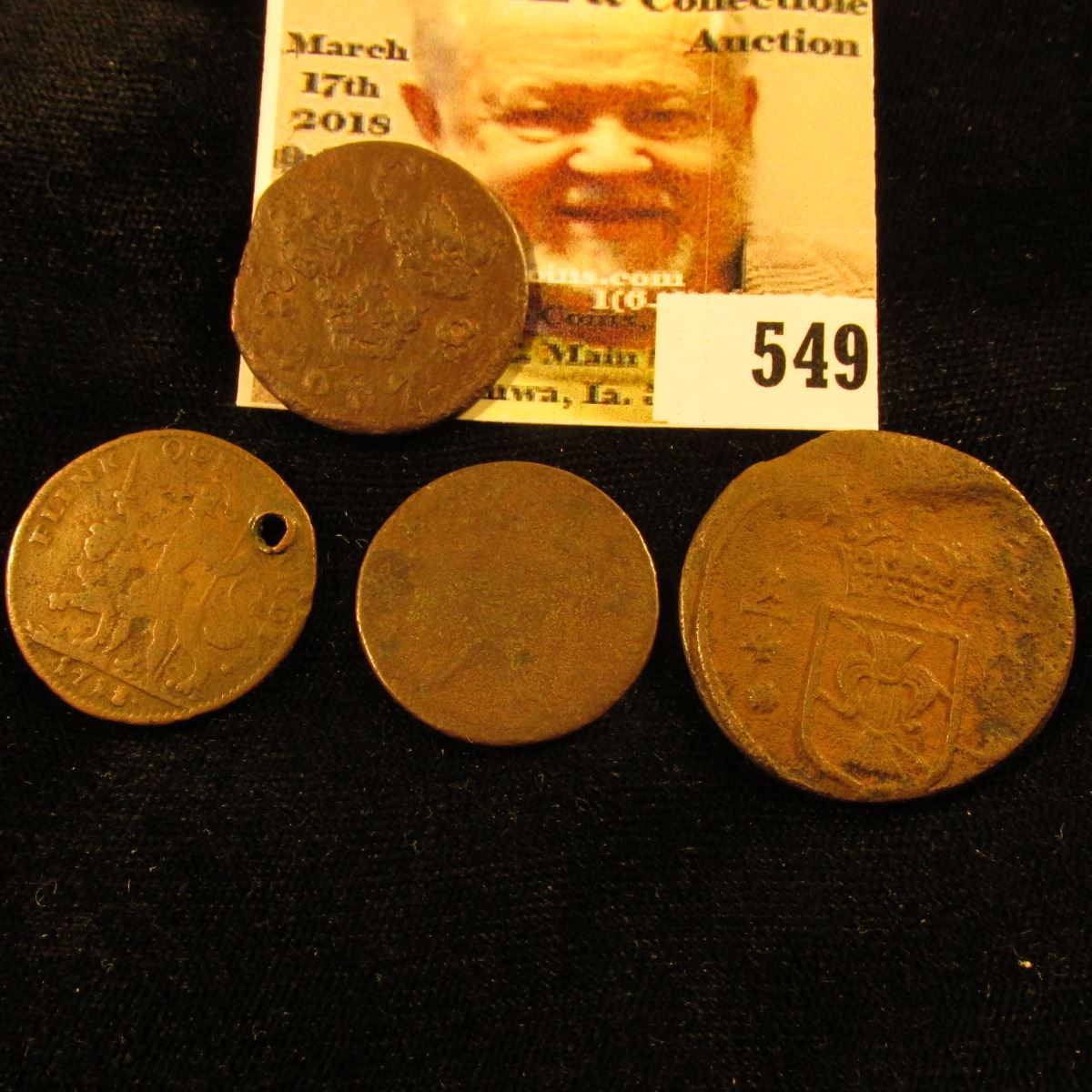 (4) Different Sweden Coins, (one holed) Dating between 1667-1718.