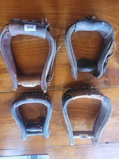 4 Different stirrups All old made of leather and wood Great for display or for re-purpose All in good condition