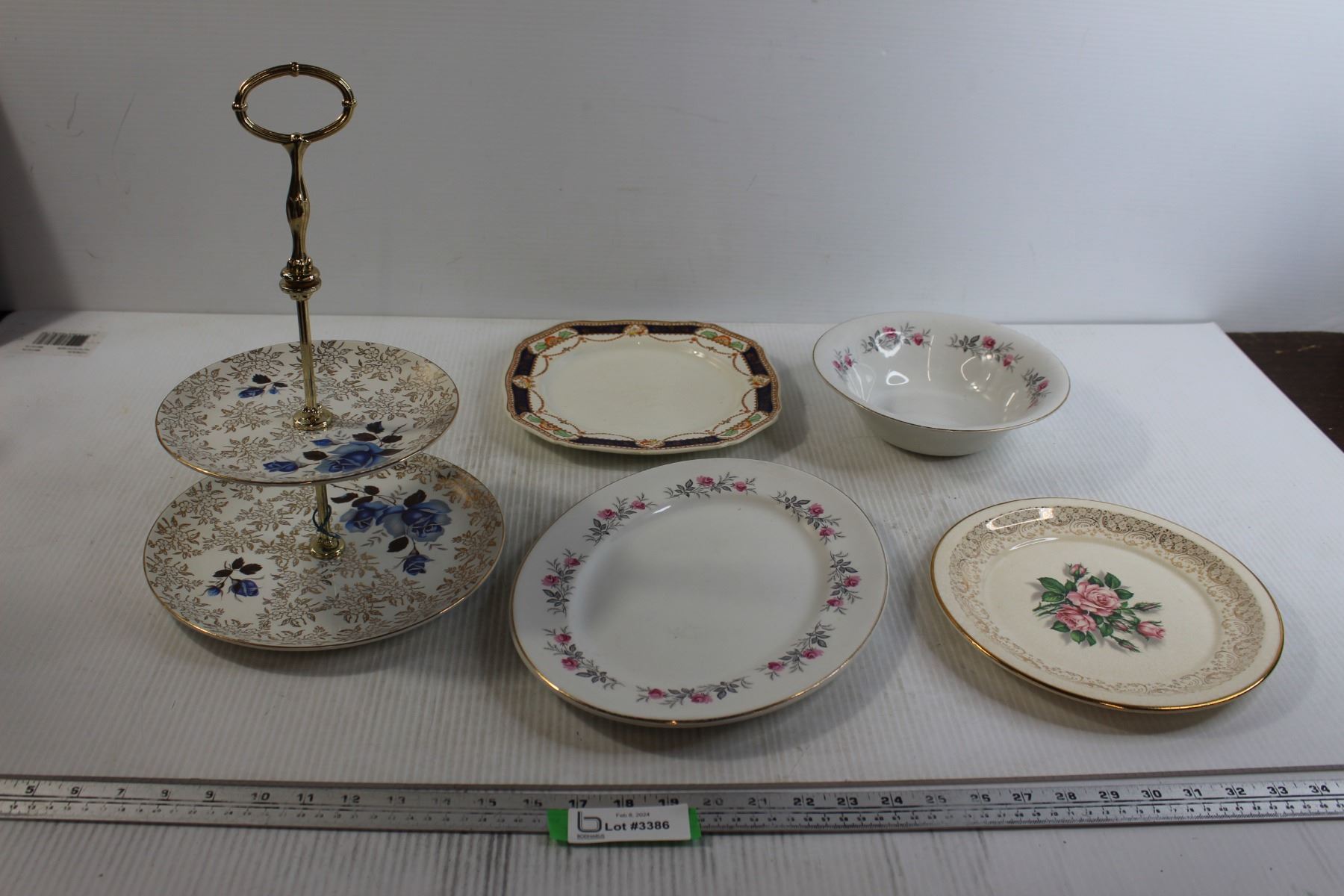(4) Dishes, 3-Tier Cupcake Display - Missing (1) Tier