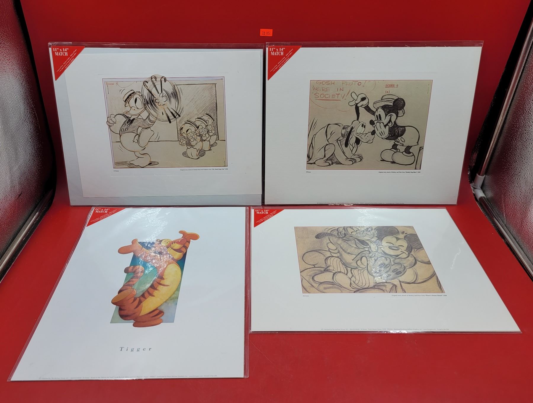 4 Disney Original Story Sketch Prints w/ Pluto's Dream House, Mr. Duck Steps Out, & More