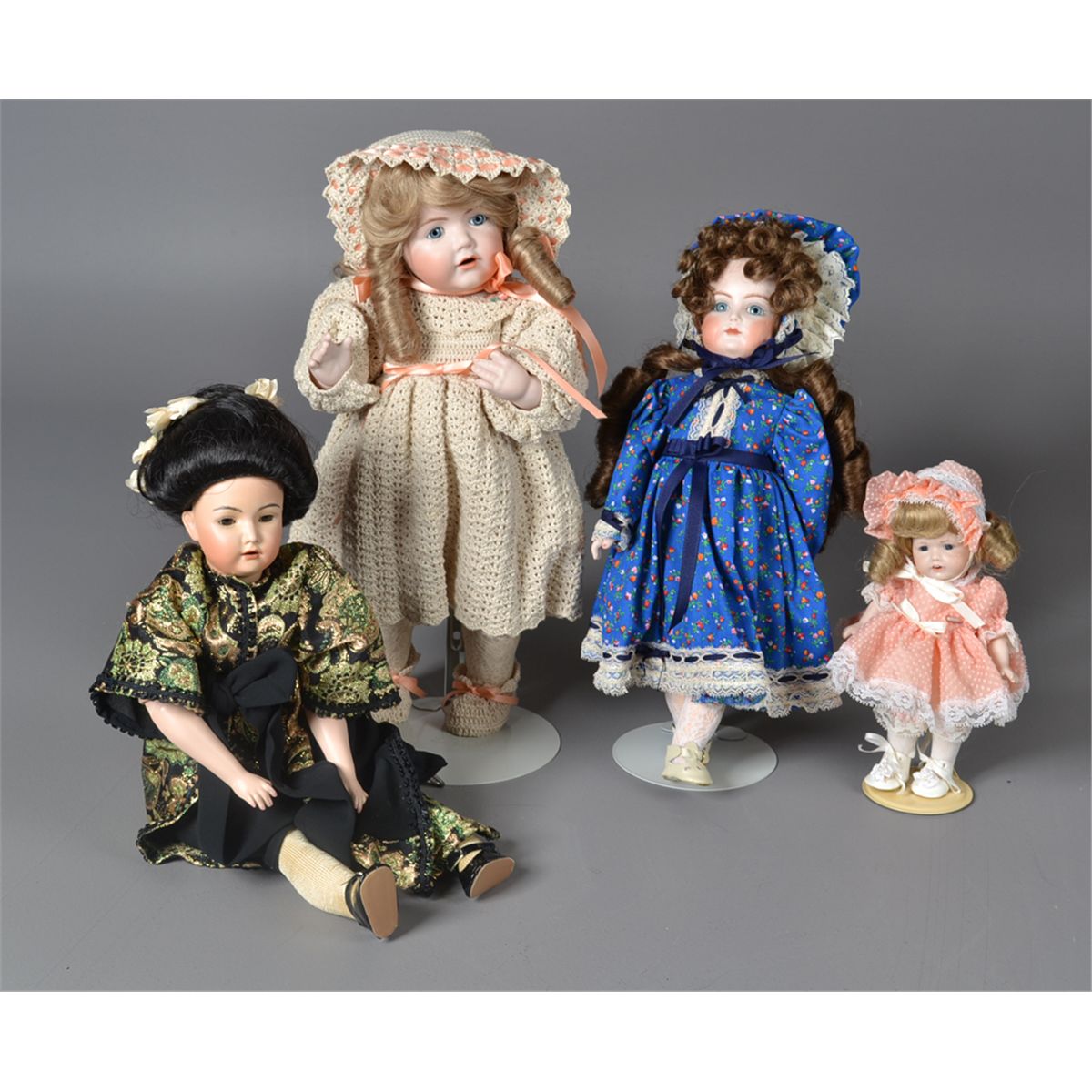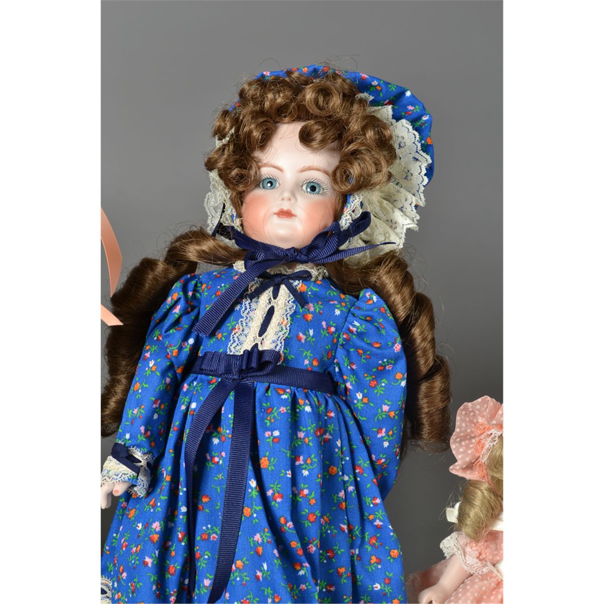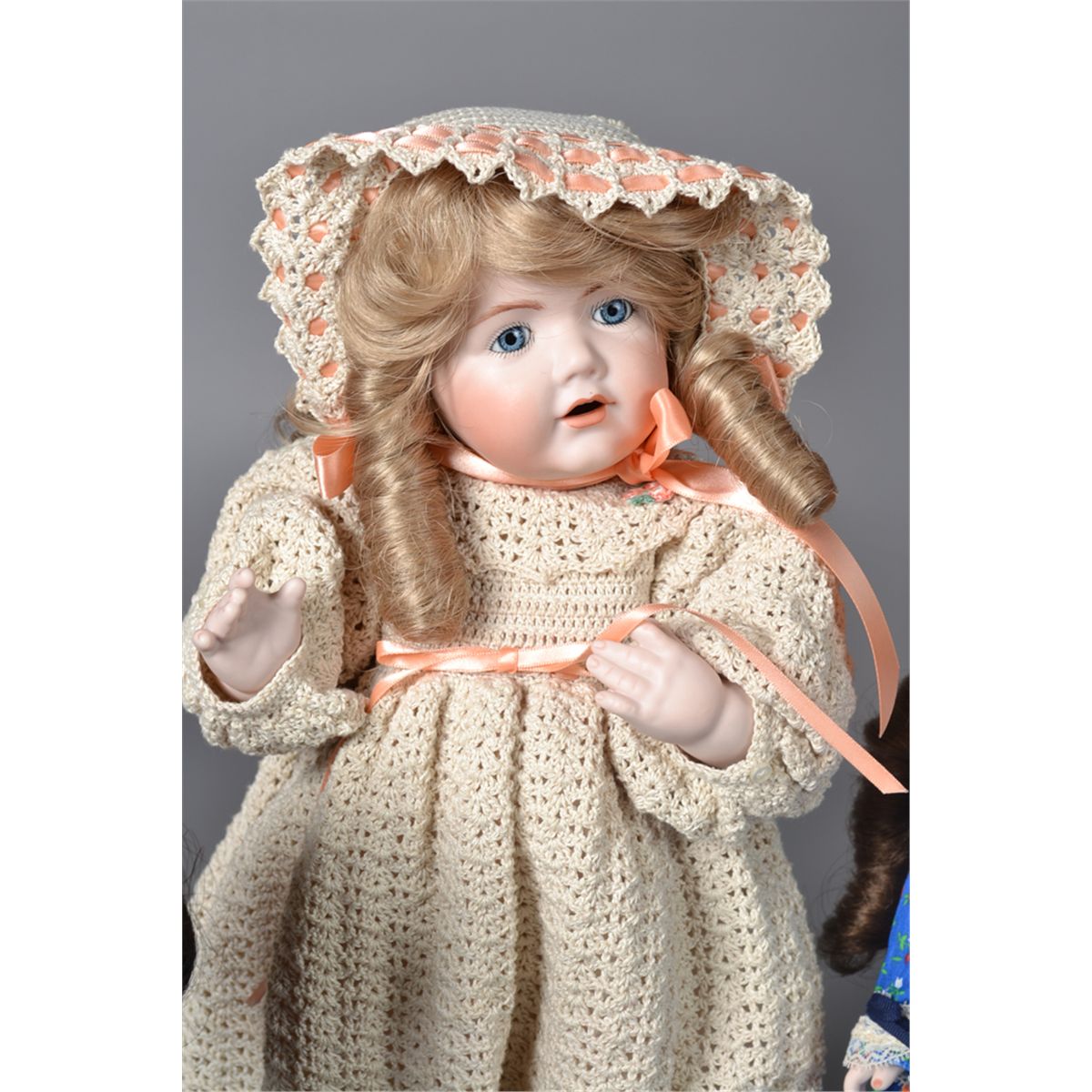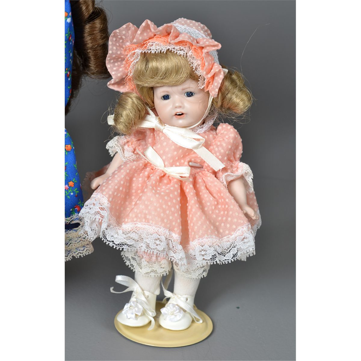 To include various dolls with hand painted details and various forms of dress. Largest measures 17". Made by Dolls by Joyce Westland, MI. Circa 1980. Private collection Gregory, MI.
