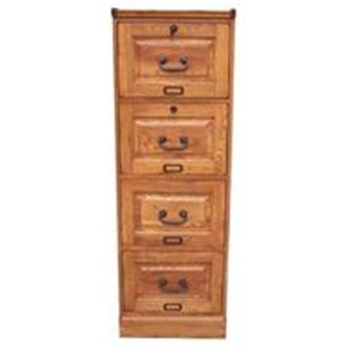 4 Drawer OAK HEIRLOOMS FILE CABINET, SOLID OAK, no particle board. Finish is a medium oak distressed lsatin lacquer finish . check out the fancy raised panels and the Bail drawer pulls. Overall dimensions are, 54in height 22in deep and 18.5in wide. Holds letter or legal files. Features Locking drawers. Available in our most popular finish, HD, Harvest Distressed (Shown). This is a medium oak distressed finish. available in Light finish,( almost natural )See our matching desk. Or GMD finish which is our darkest finnish. S&H 49.00