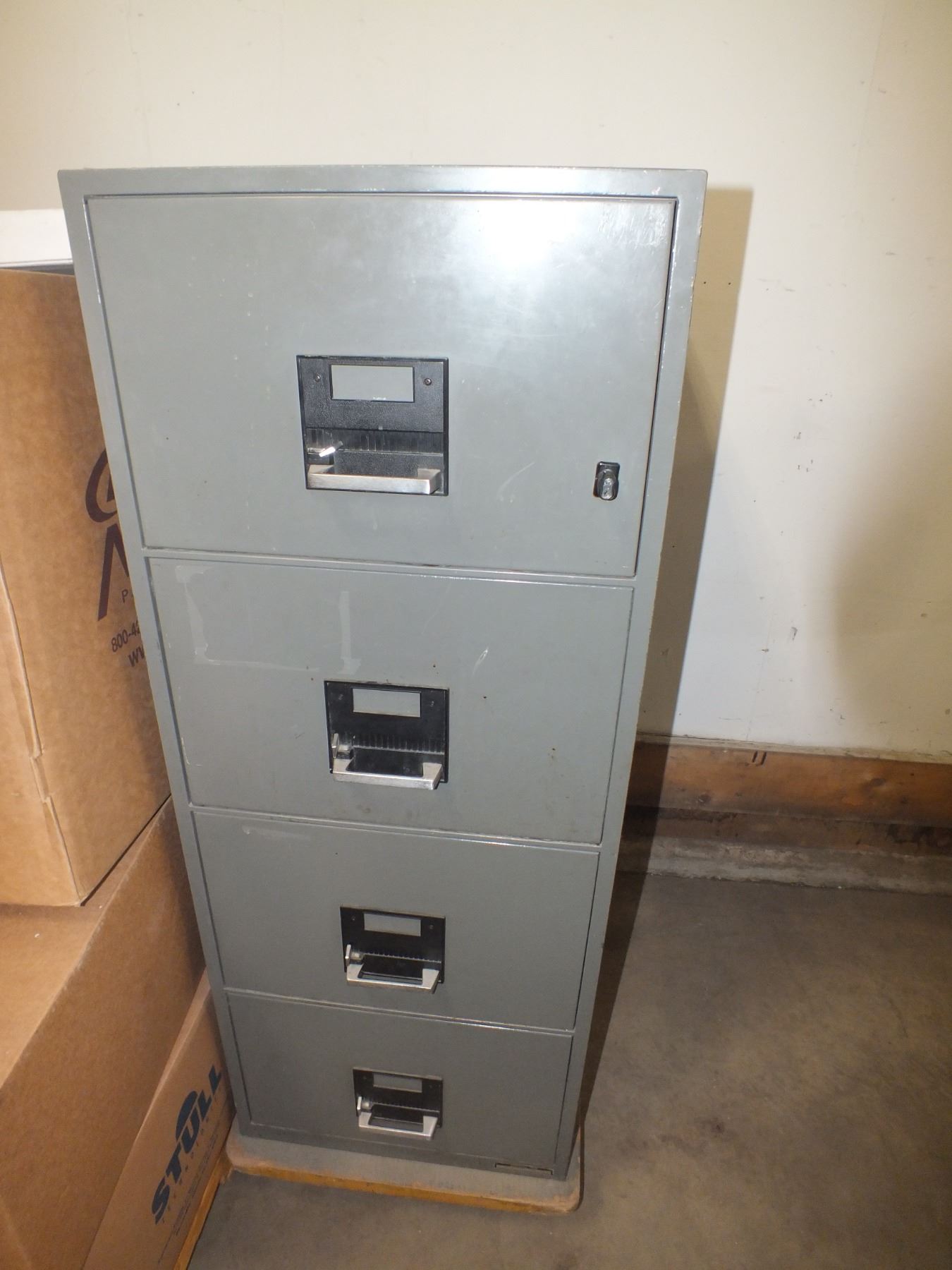 4 Drawer Fireproof Filling Cabinet, top drawer is locker, 20 1/4"w 30 1/4"d 54"h, no keys...used