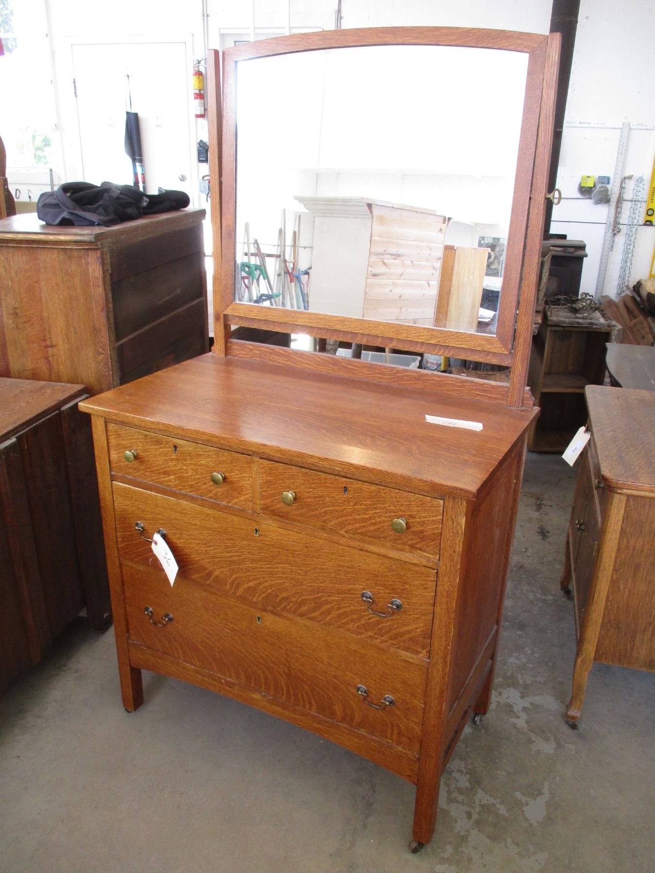 4-Drawer Oak Dresser on Casters w/ Mirror - 36x20x67