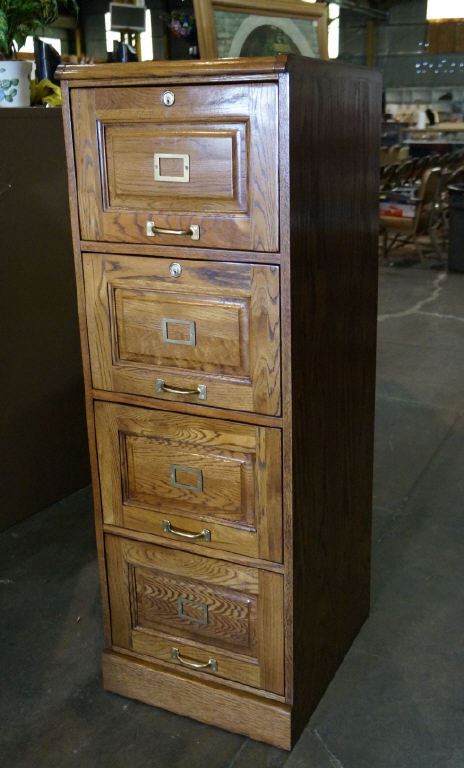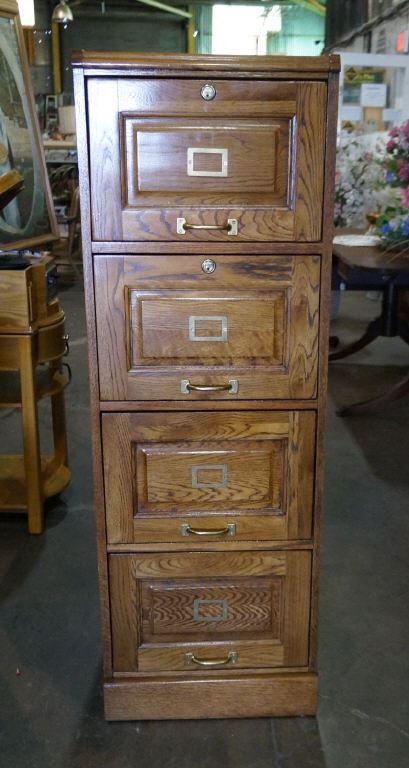 4 Drawer Wooden File Cabinet In Great Condition Approx. 55 x 21 x 19