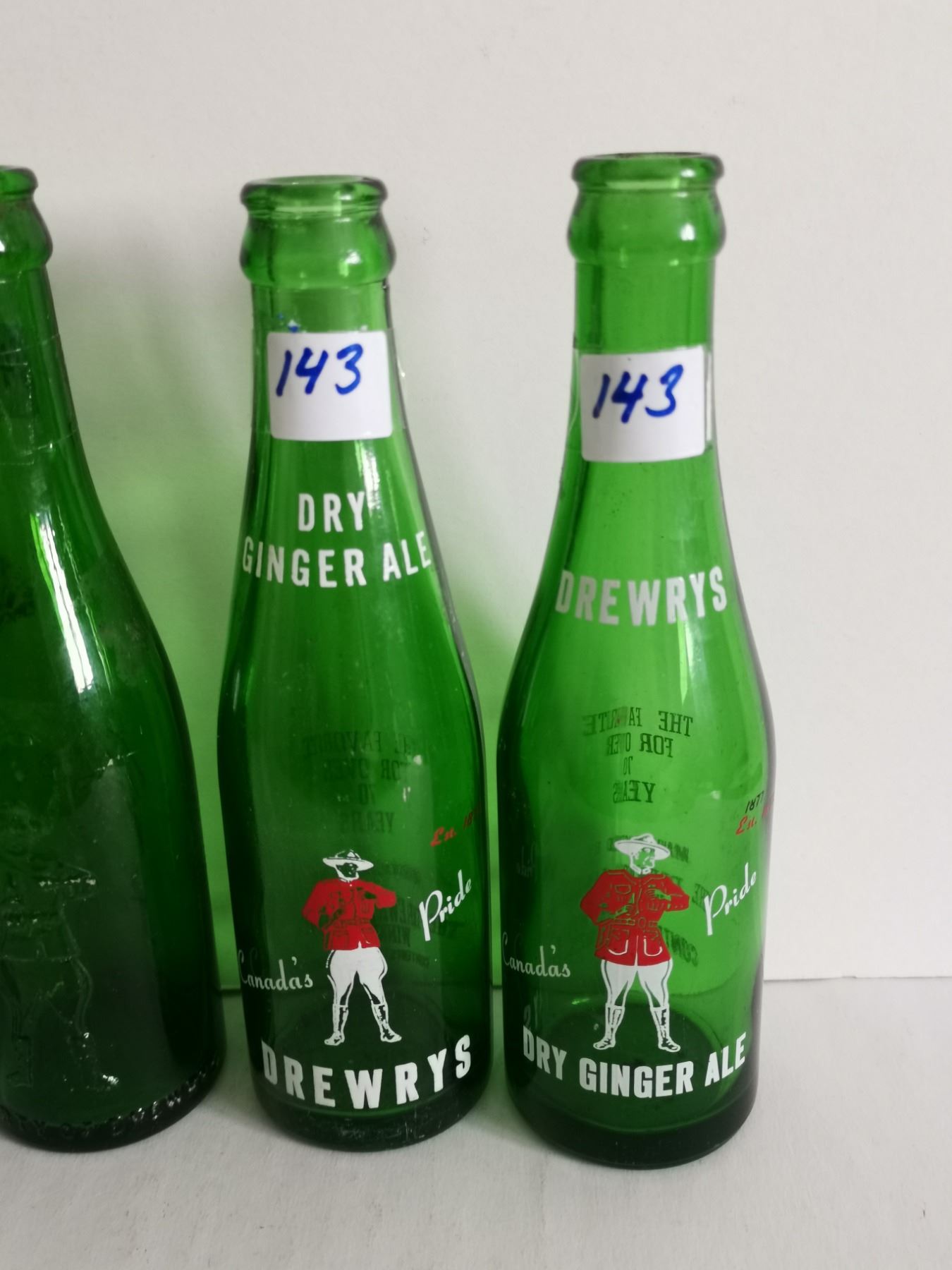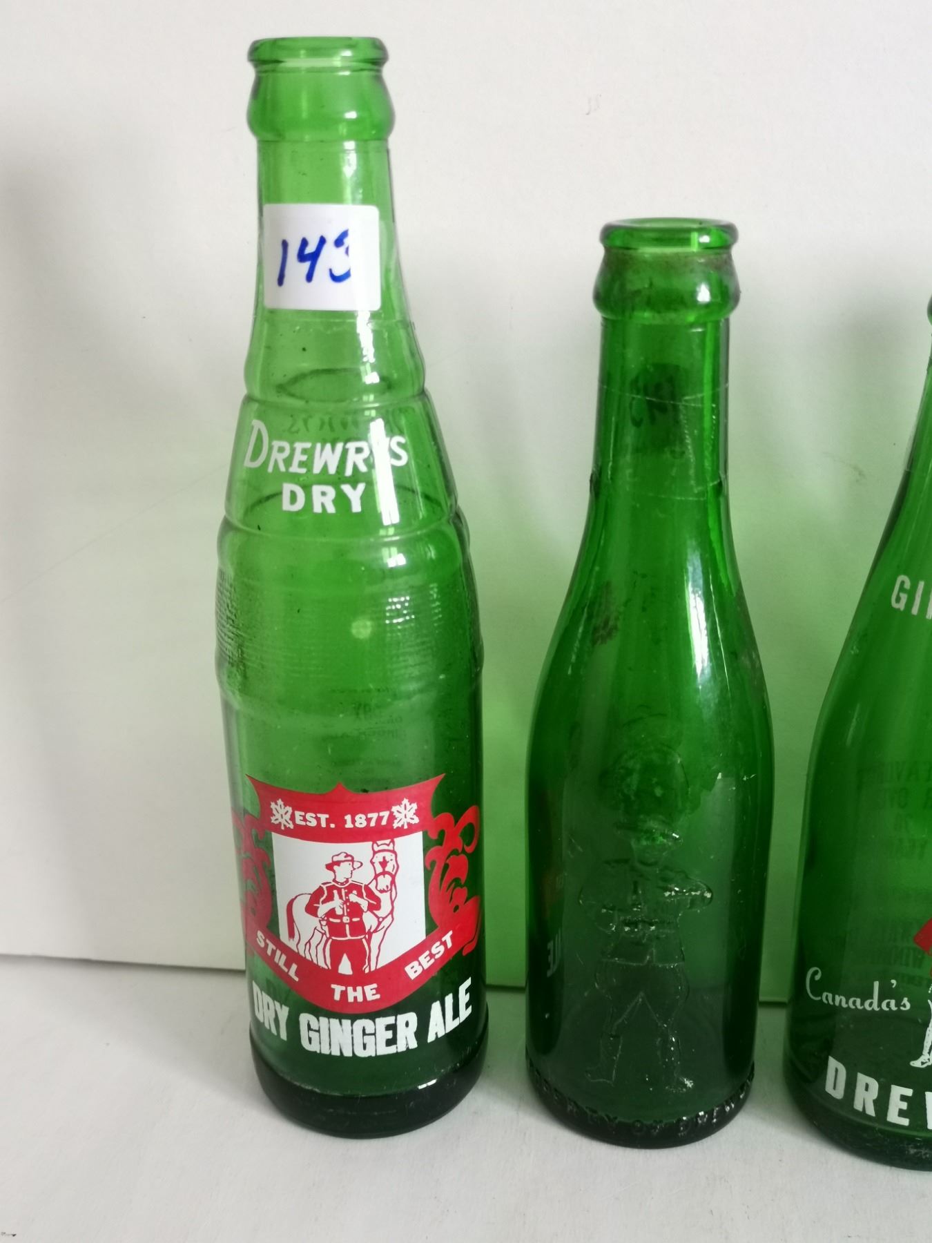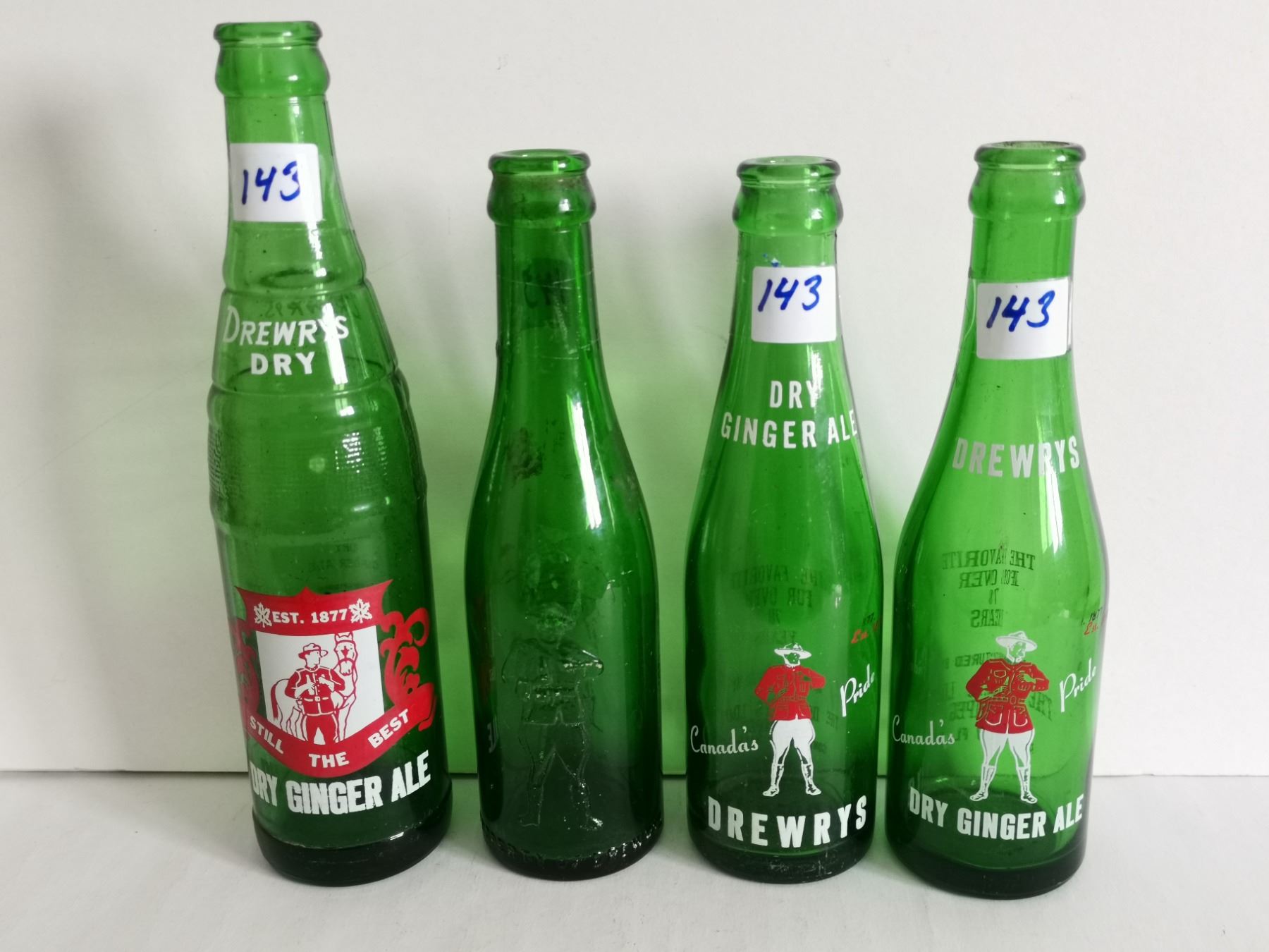 4 Drewrys dry ginger ale bottles - RCMP