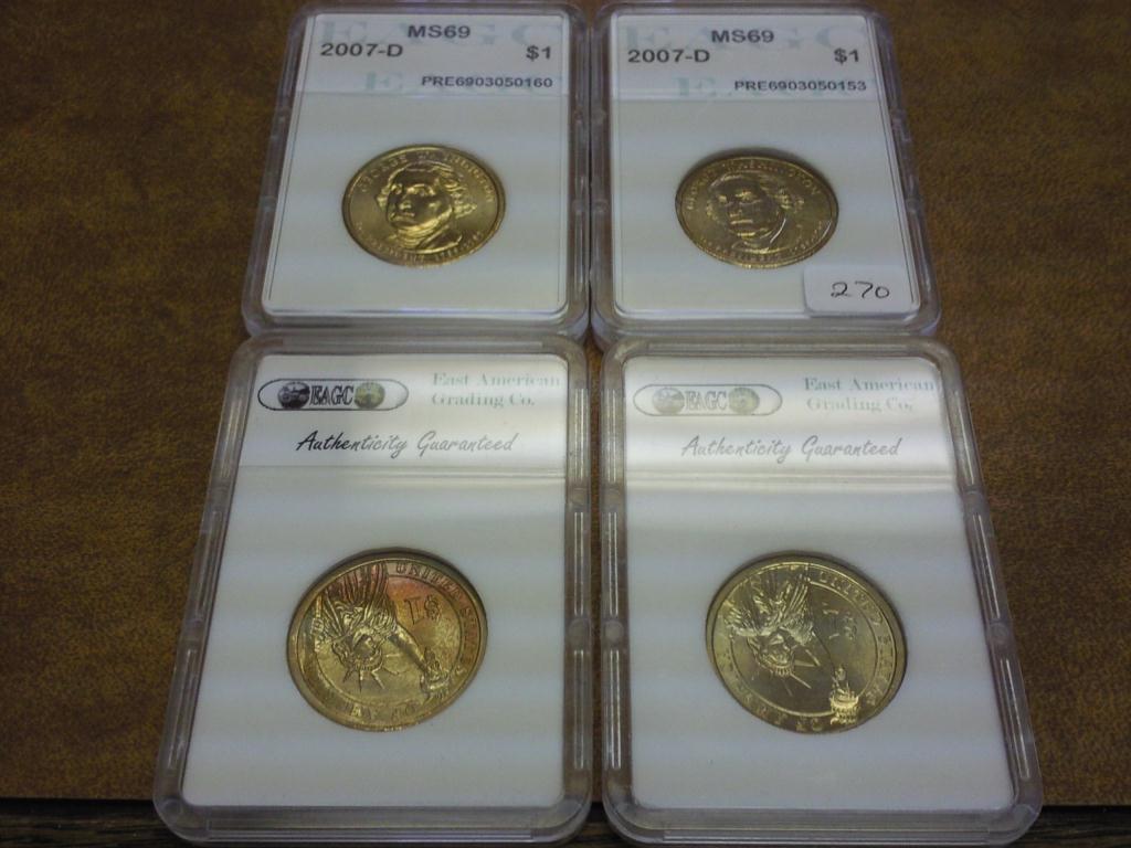 2-2007-D WASHINGTON DOLLARS MS69, 2-2007-P WASHINGTON DOLLARS MS69 AND