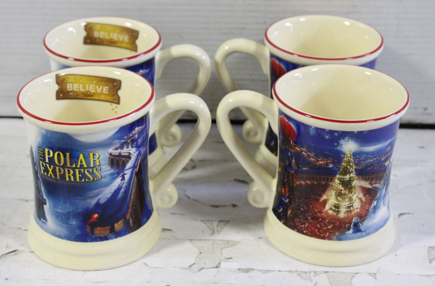 4 EMBOSSED POLAR EXPRESS MOVIE MUGS
