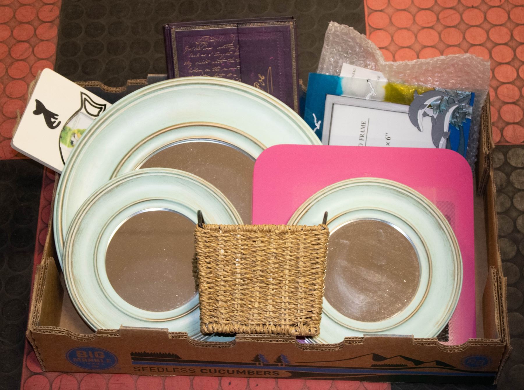 4 ESTATE COLOURED MIRRORS, WICKER
