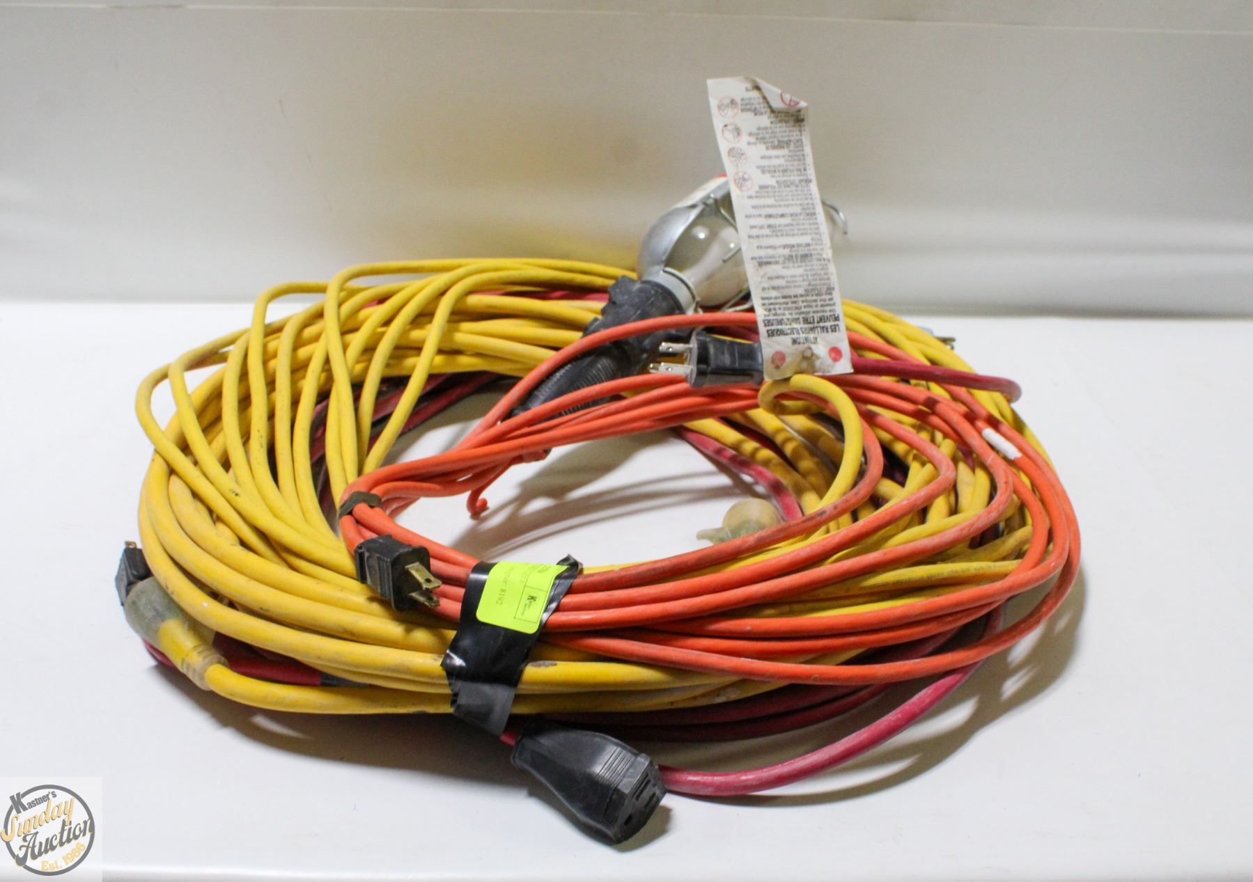 4 EXTENSION CORDS AND 1 TROUBLE LIGHT