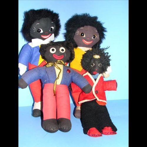Group of four early golliwogs measuring 11", 12", and two at 13". Very good condition. Weight 2 lbs.
