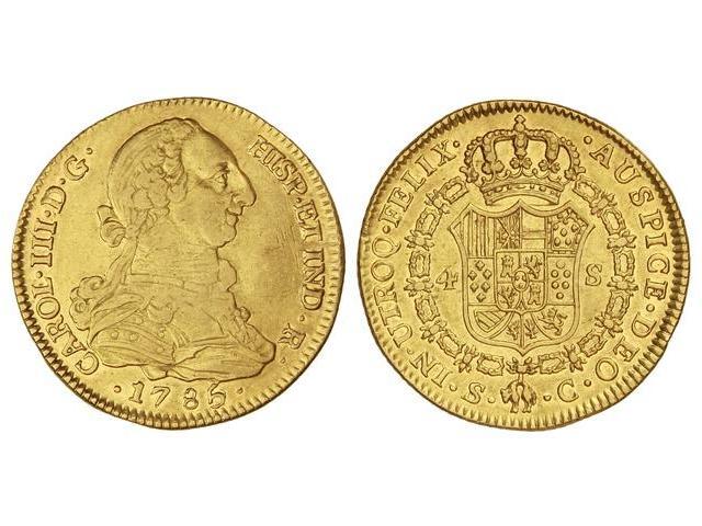 4 Escudos. - 1785/4. - SEVILLA. - C. - Restos de brillo. RARA. Cal-408. MBC/MBC+. - -