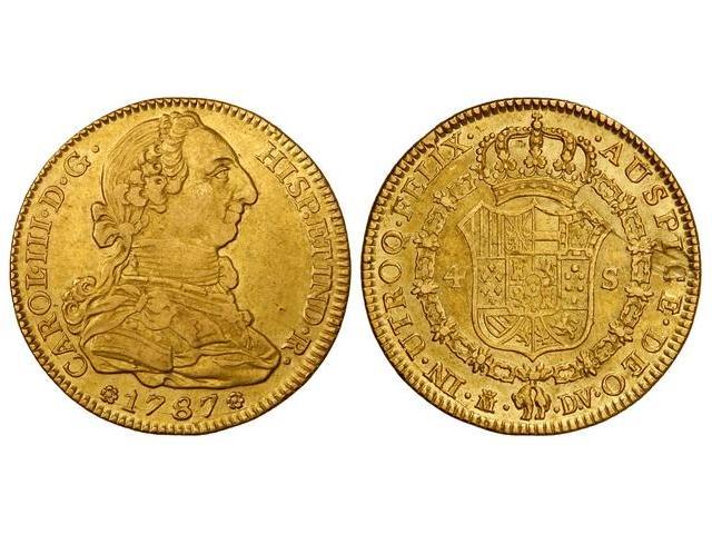 4 Escudos. 1787. MADRID. D.V. (Hojita en reverso). Cal-313. EBC-.