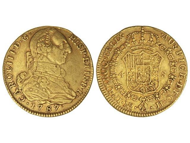 4 Escudos. - 1787. - NUEVO REINO. - J.J. - (Hojitas y golpecitos). Cal-381. MBC. - -