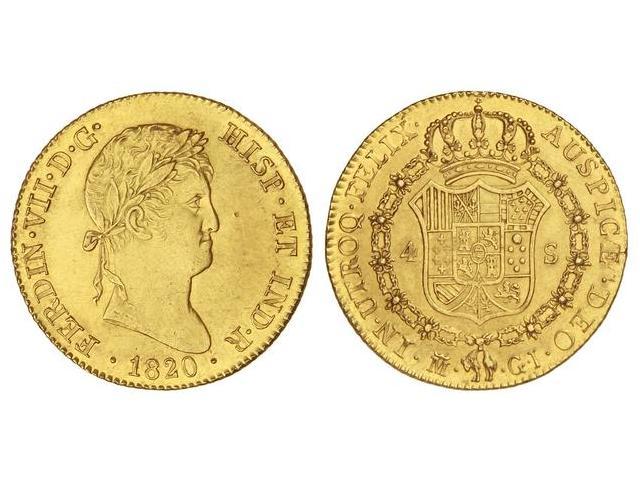 4 Escudos. - 1820. - MADRID. - G.J. - (Acuñación algo floja en parte reverso. Pequeños golpecitos en anverso). Cal-150. MBC+. - -