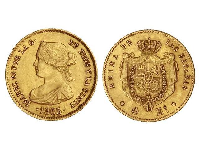 4 Escudos. 1865. MADRID. Cal-108. MBC+.