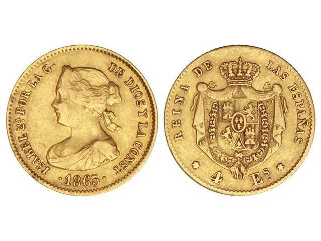 4 Escudos. 1865. MADRID. (Pequeños golpecitos). Cal-108. MBC-.