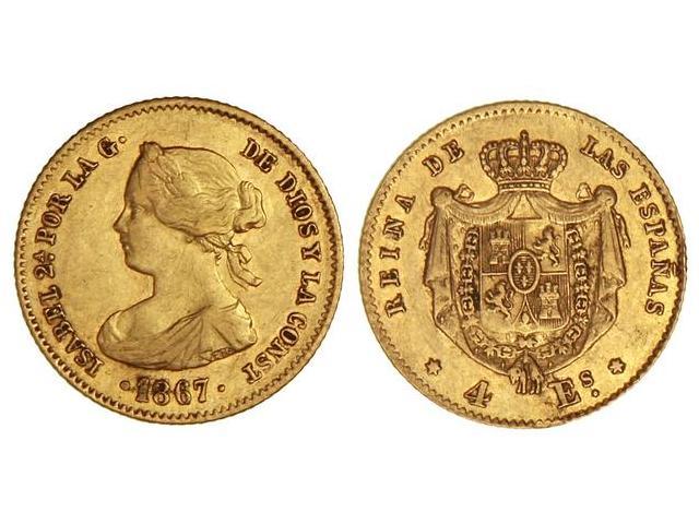 4 Escudos. 1867. MADRID. (Pequeñas rayitas). Cal-111. MBC+.
