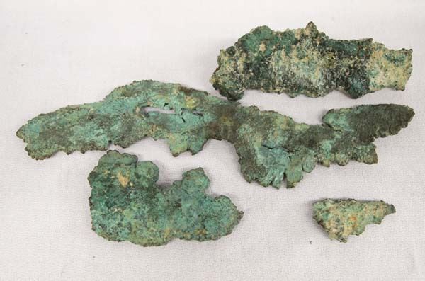 From the Henderson Estate in Silver City NM, we have a collection of 4 Copper Splashes, largest measures 8.5''L, a little over 1 pound in total wt. These specimens were originally mounted on a wooden frame.