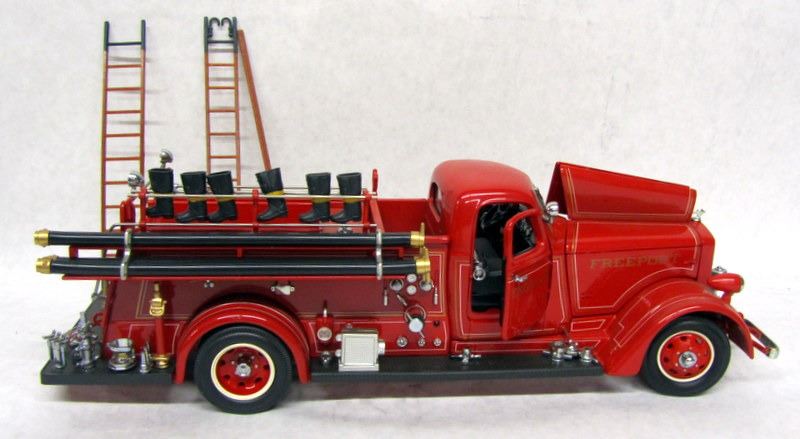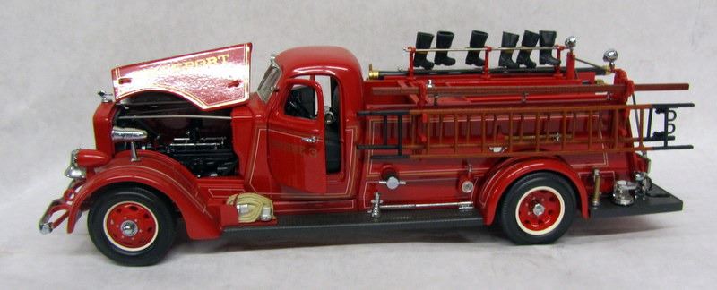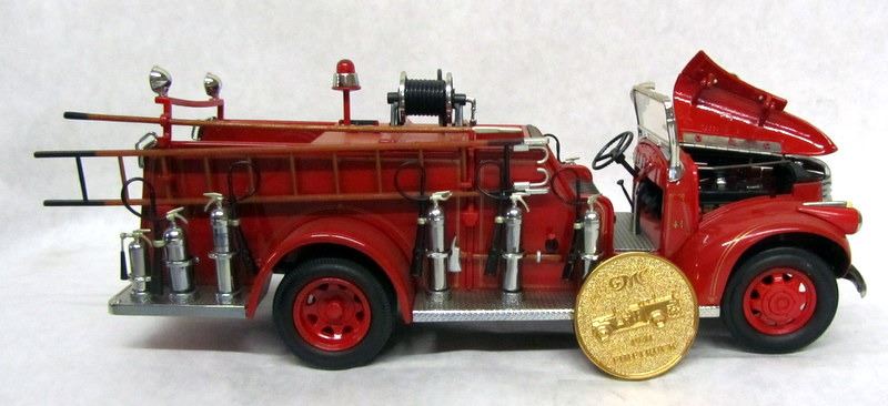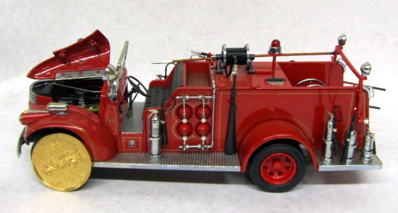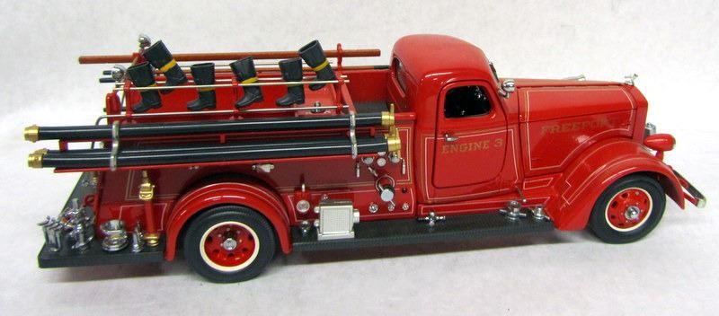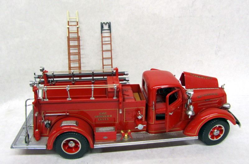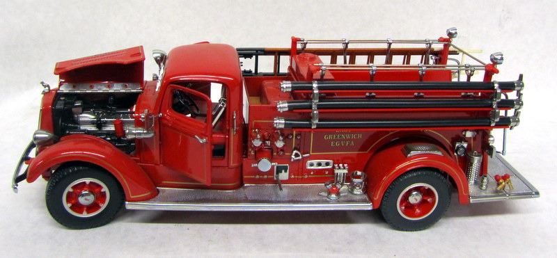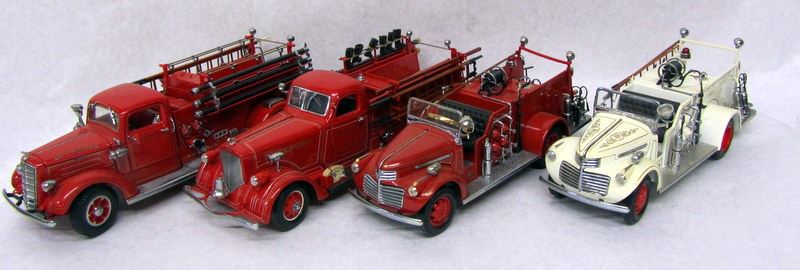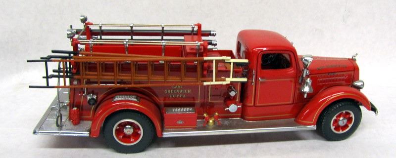 FREEPORT FIRE DEPT. 1939 AMERICAN LATRANCE TYPE B-550-RC, 1:24, MADE BY SIGNATURE. EAST GREENWICH FIRE DEPT. 1938 MACK TYPE 75, 1:24, MADE BY SIGNATURE. RED 1941 GMC FIRESTRUCK, 1:24, MADE BY SIGNATURE. WHITE 1941 GMC FIRETRUCK, 1:24, MADE BY SIGNATURE.