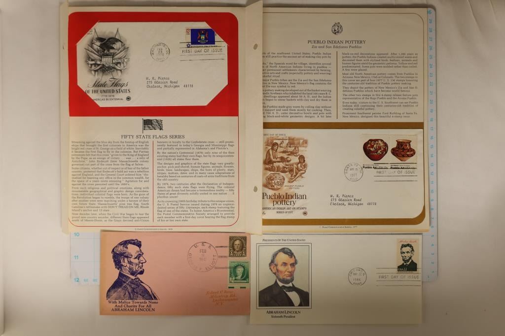 ABRAHAM LINCOLN "WITH MALICE TOWARDS NONE AND CHARITY FOR ALL", 1986 ABRAHAM LINCOLN SIXTEENTH PRESIDENT, 1976 STATE FLAGS OF THE UNITED STATES AMERICA BICENTENNIAL AND 1977 PUEBLO INDIAN POTTERY