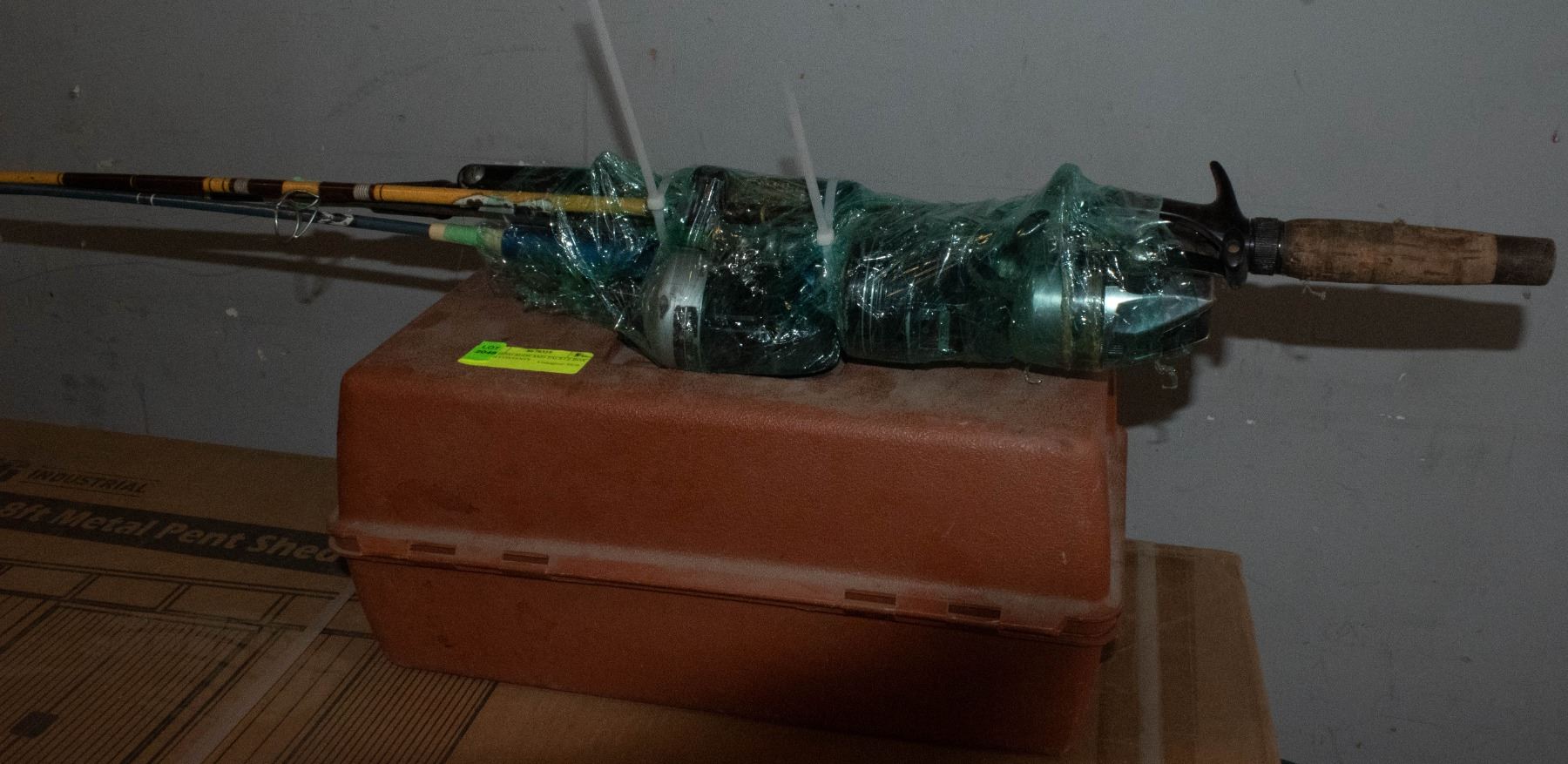 4 FISHING RODS AND TACKLE BOX WITH CONTENTS