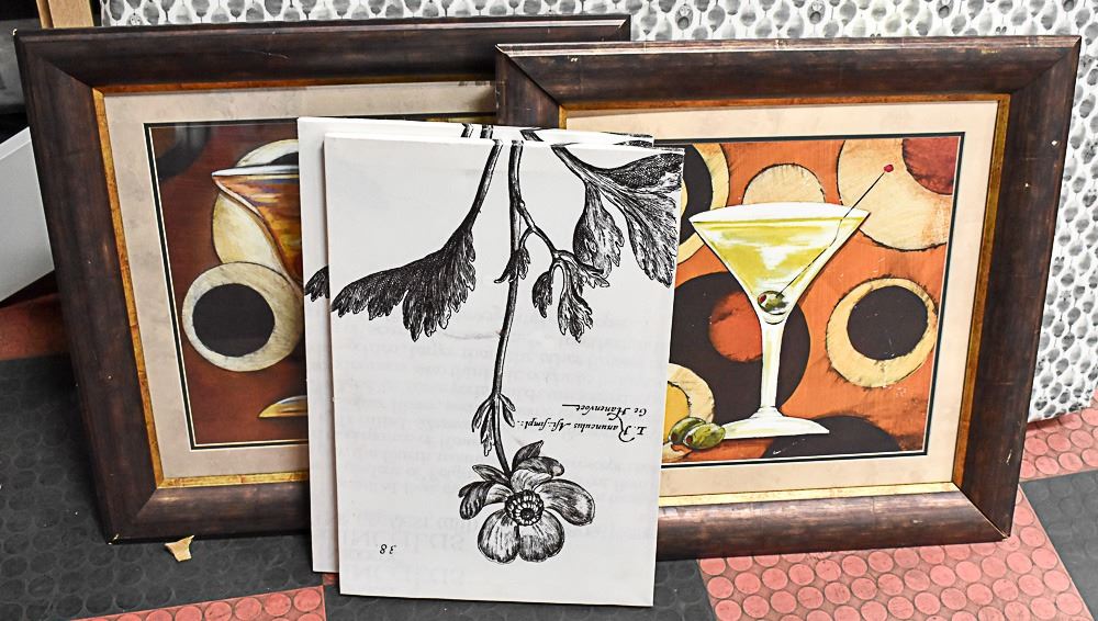4 FRAMED WALL ART, 2 MISSING GLASS
