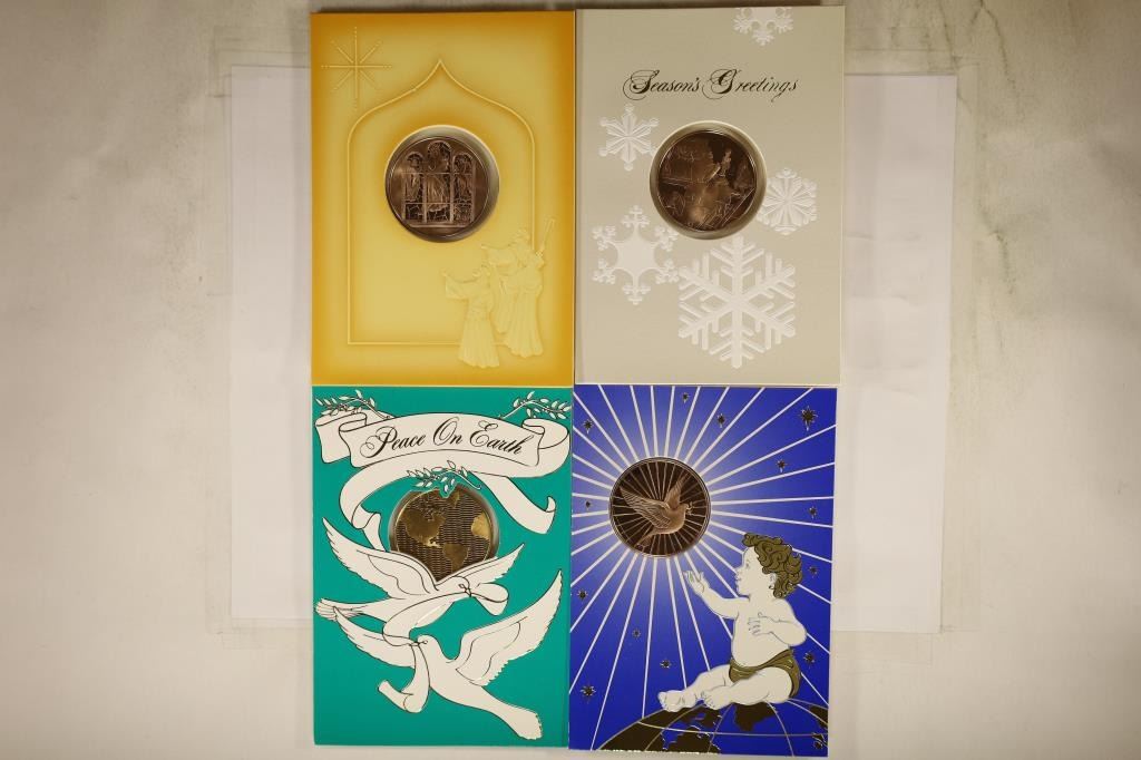 BRONZE TOKENS THAT ARE BRILLIANT UNC SEALED IN PLASTIC WITHIN THE CARDS