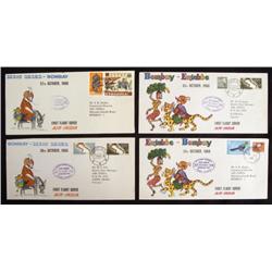 They feature a funny Indian cartoon character in exotic travels. The stamps include some from the Olympics. These are great looking covers, and great to find in the round trip sets.
