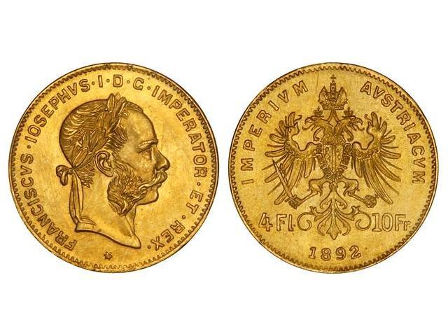 4 Florines-10 Francos. - 1892. - FRANCISCO JOSÉ I. - AU. KM-2260. SC. - -