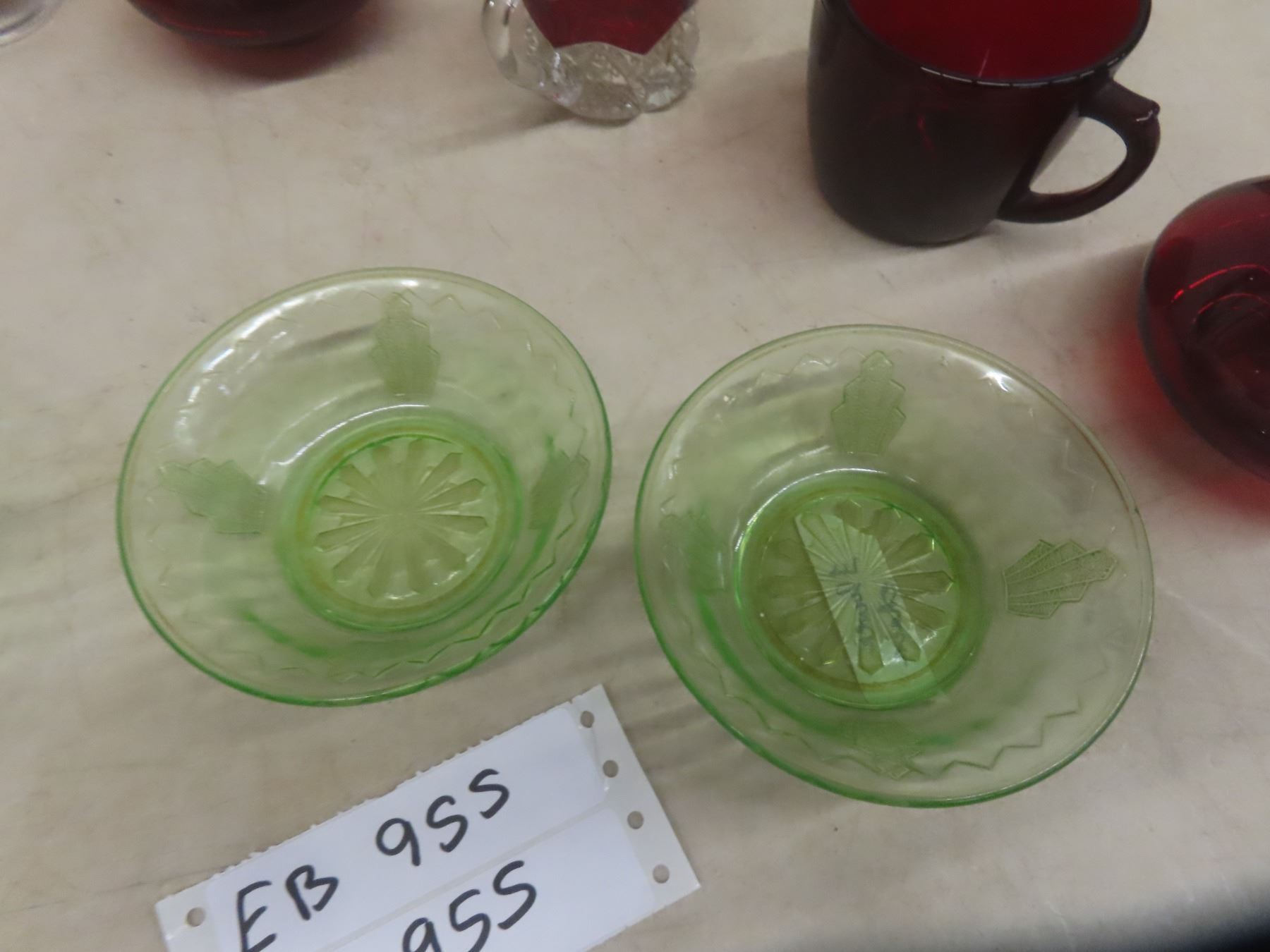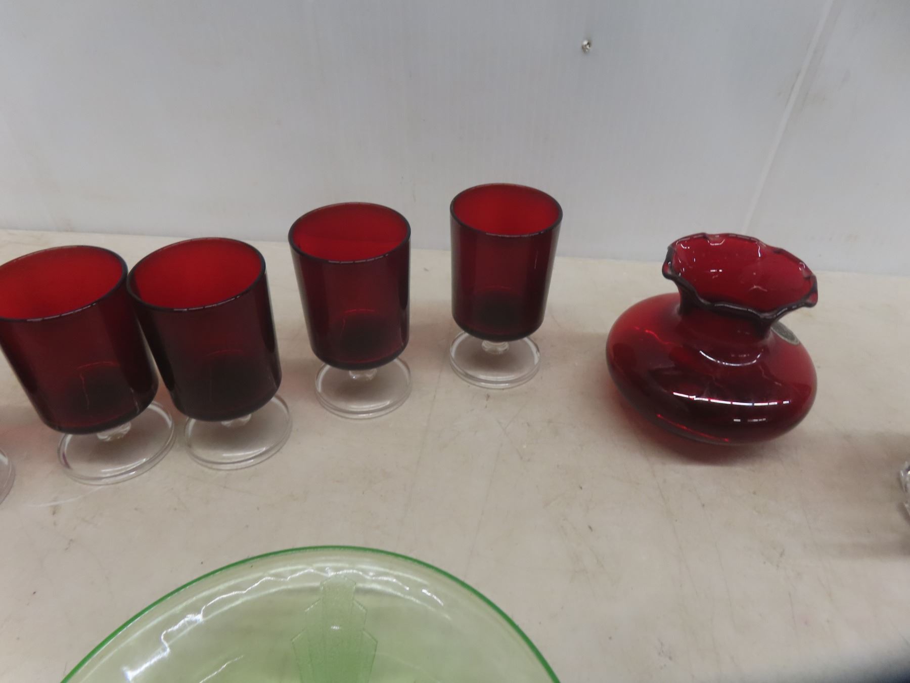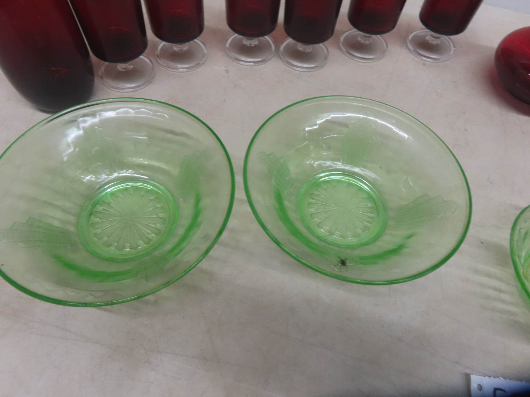 4 Flower Depression Bowls + 11 Ruby Glasses
