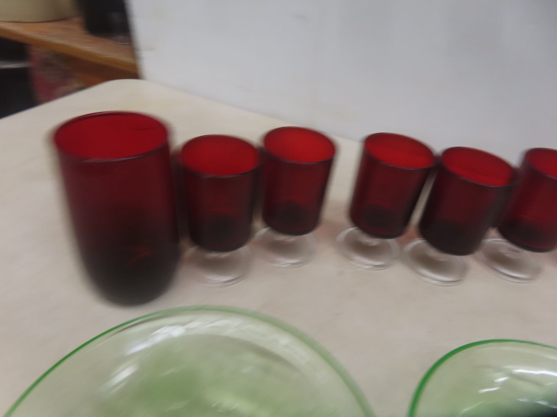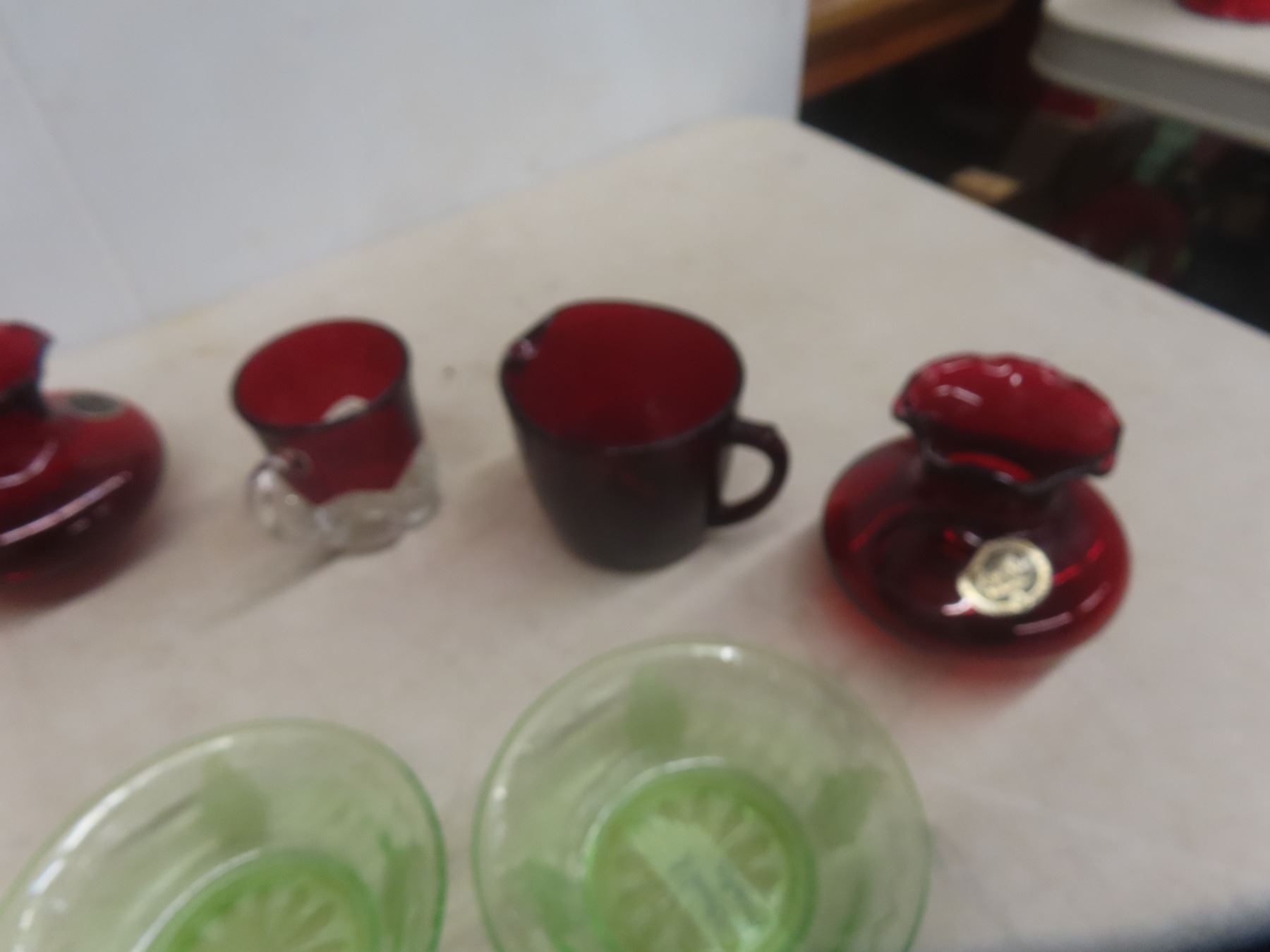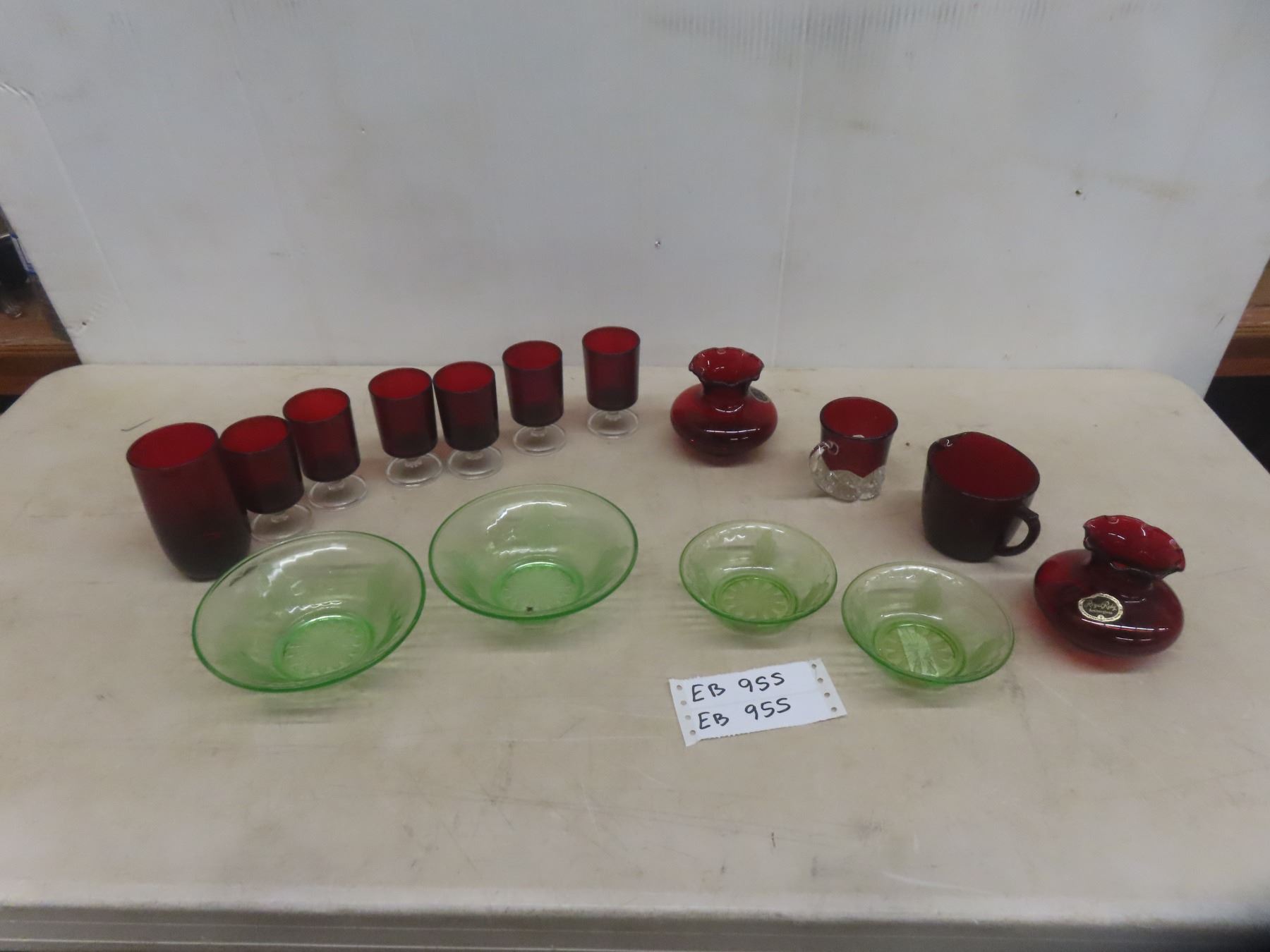 4 Flower Depression Bowls + 11 Ruby Glasses