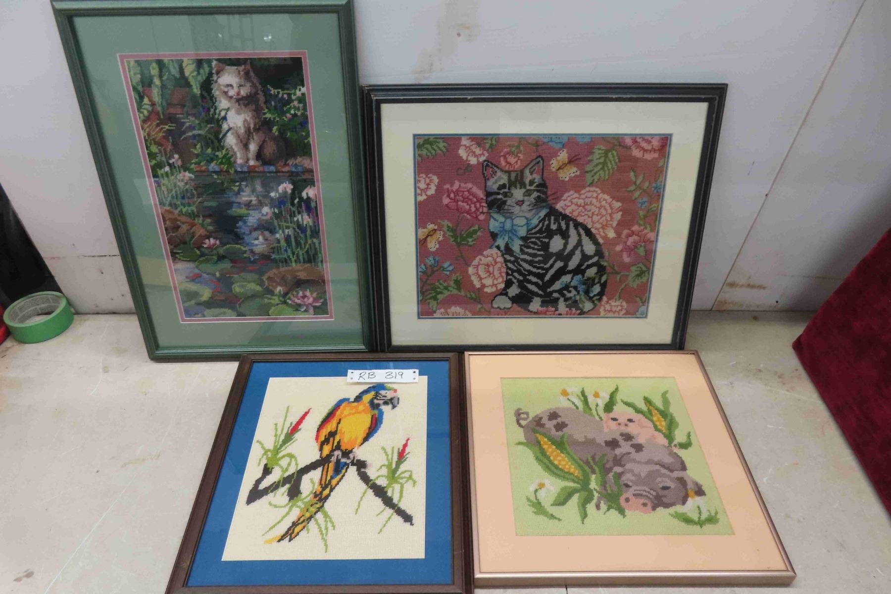 4 Framed Petit Point Pictures