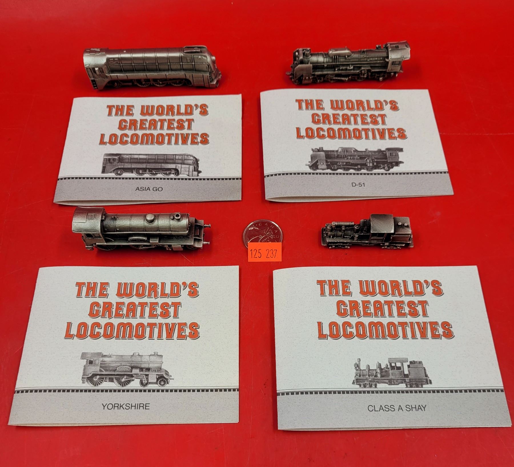 4 Franklin Mint "The World's Greatest Locomotives" Pewter Trains (Asia Go, Yorkshire, etc.)