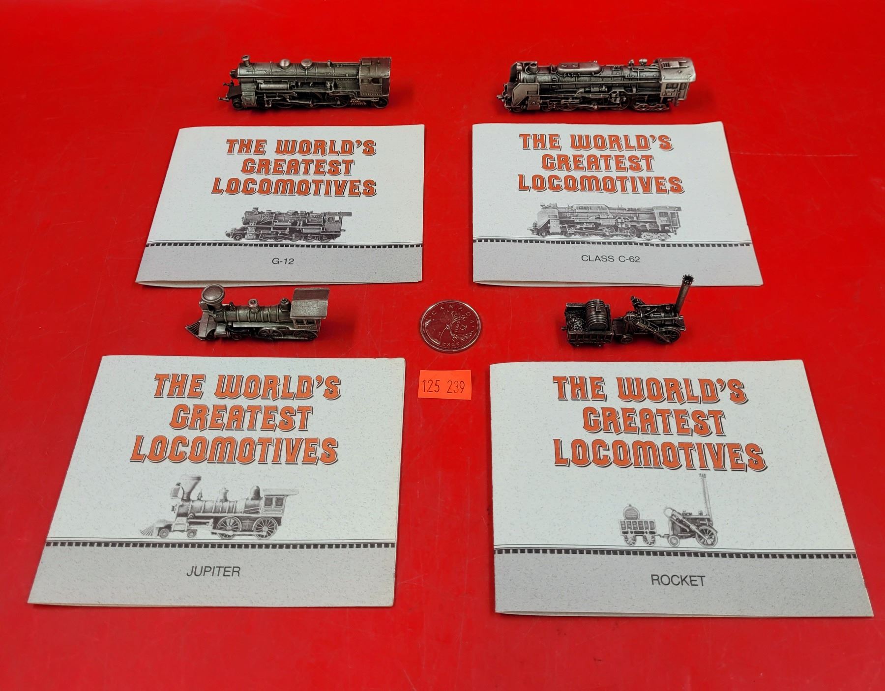 4 Franklin Mint "The World's Greatest Locomotives" Pewter Trains (Jupiter, Rocket, etc.)