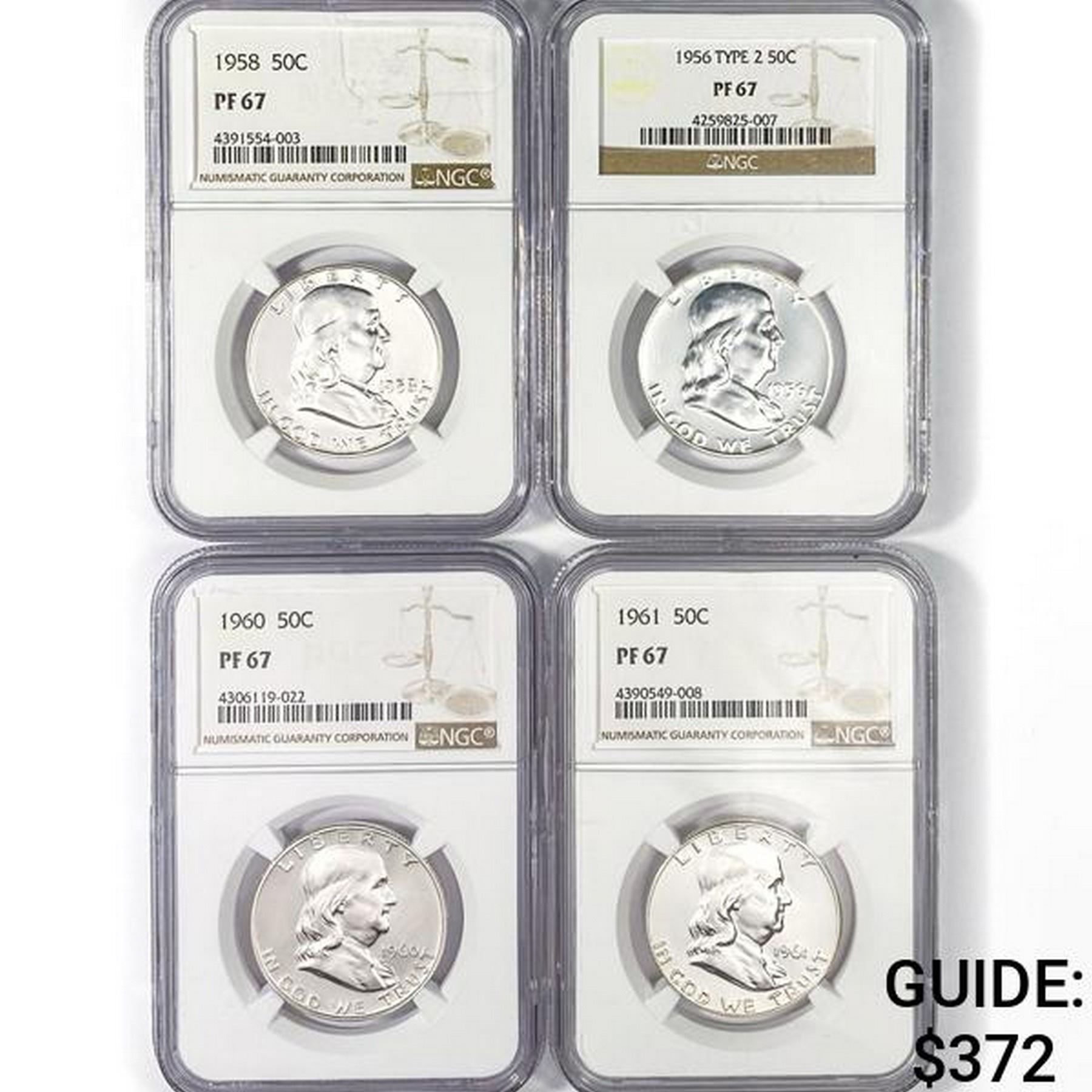 (4) Franklin Silver Half Dollar NGC PF67 1956-1961