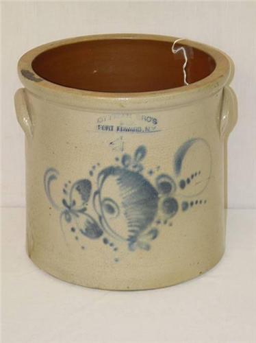 4 GAL. OTTMAN BROS. CROCK W/ COBALT FLORAL DECORATION- MARKED OTTMAN BROS. & CO. FORT EDWARDS NY - OVERALL GOOD CONDITION;
