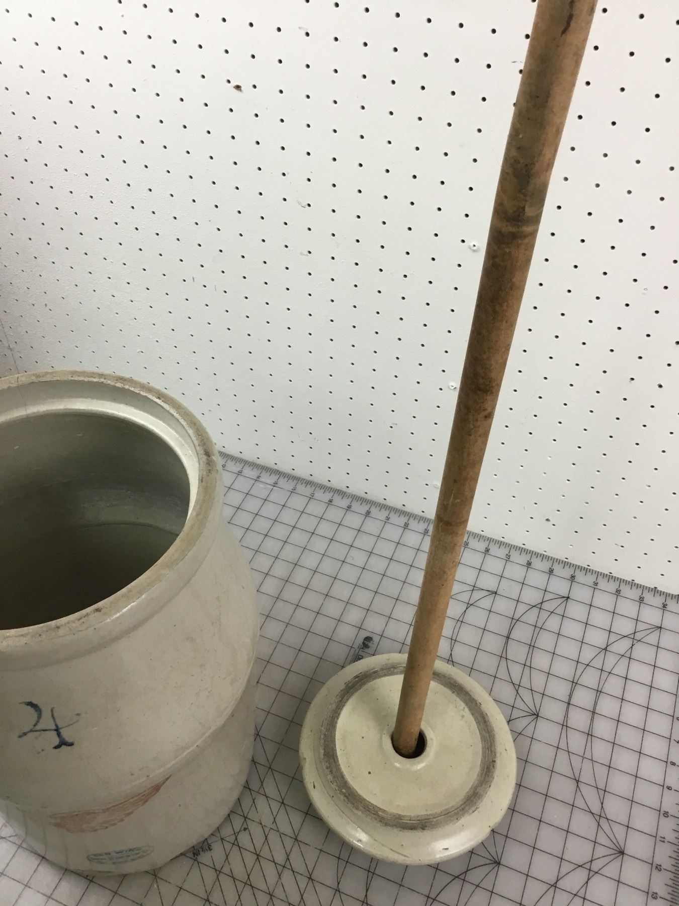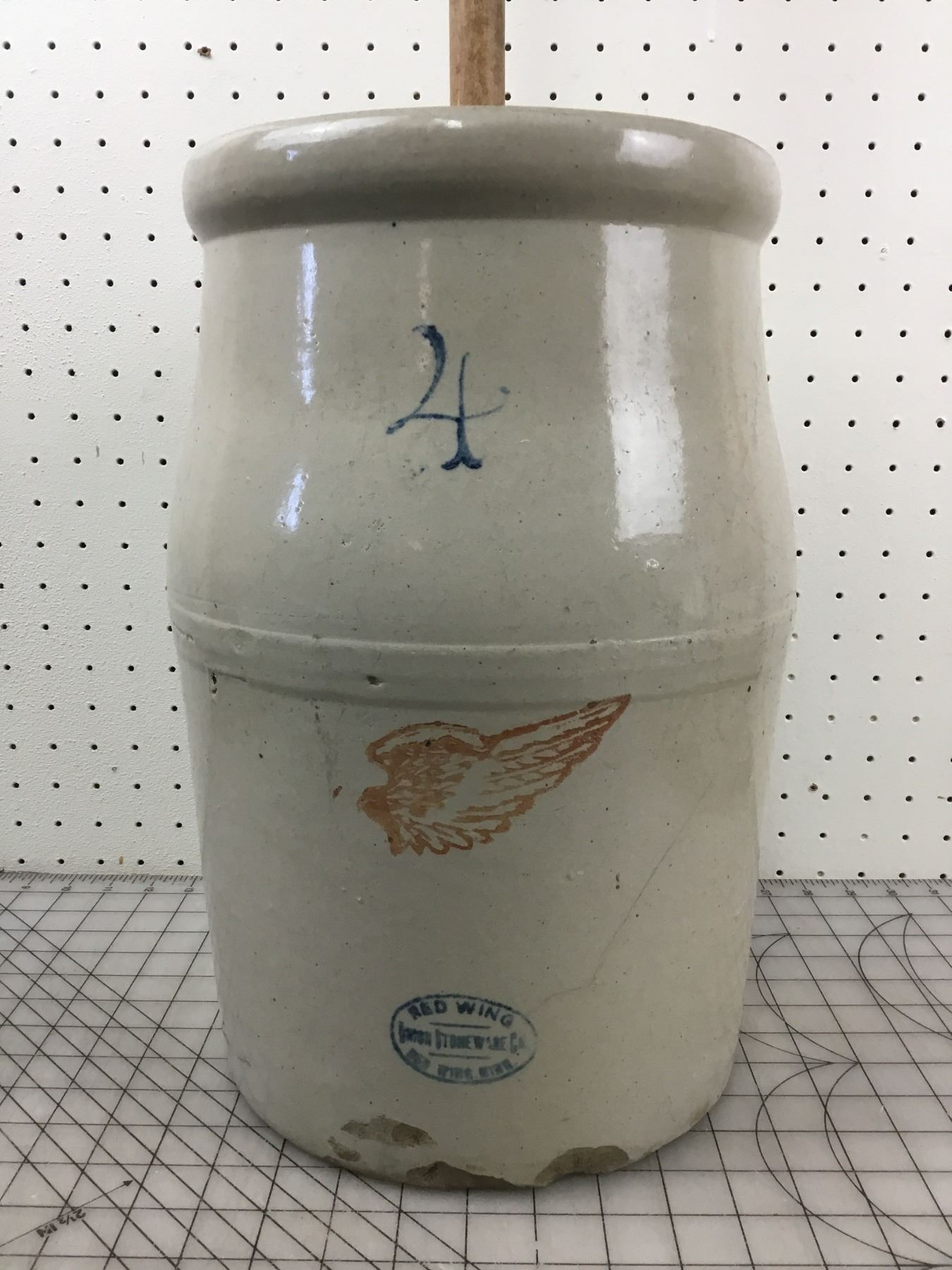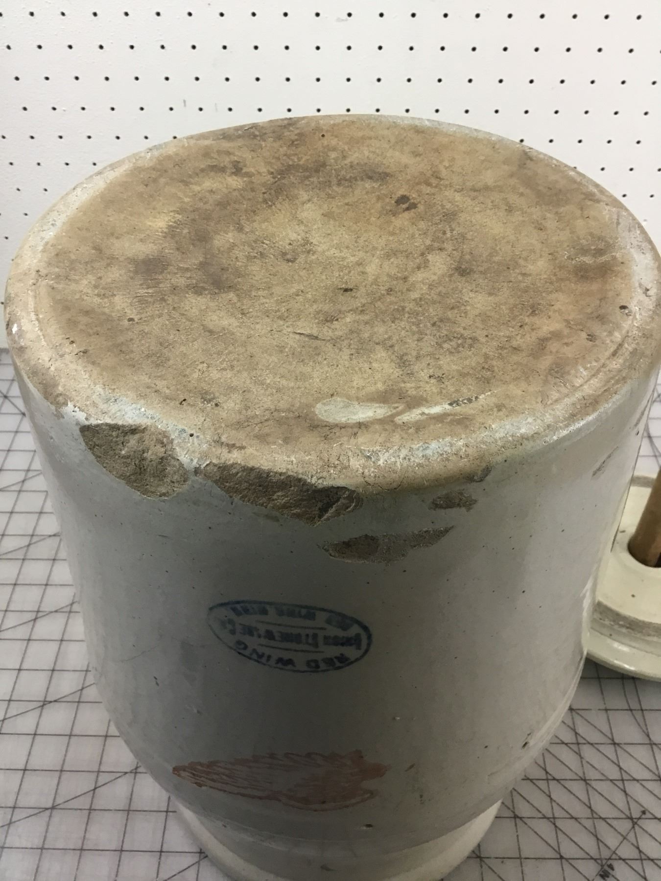 4 GALLON REDWING BUTTER CHURN CROCK CHIPS AND CRACKS