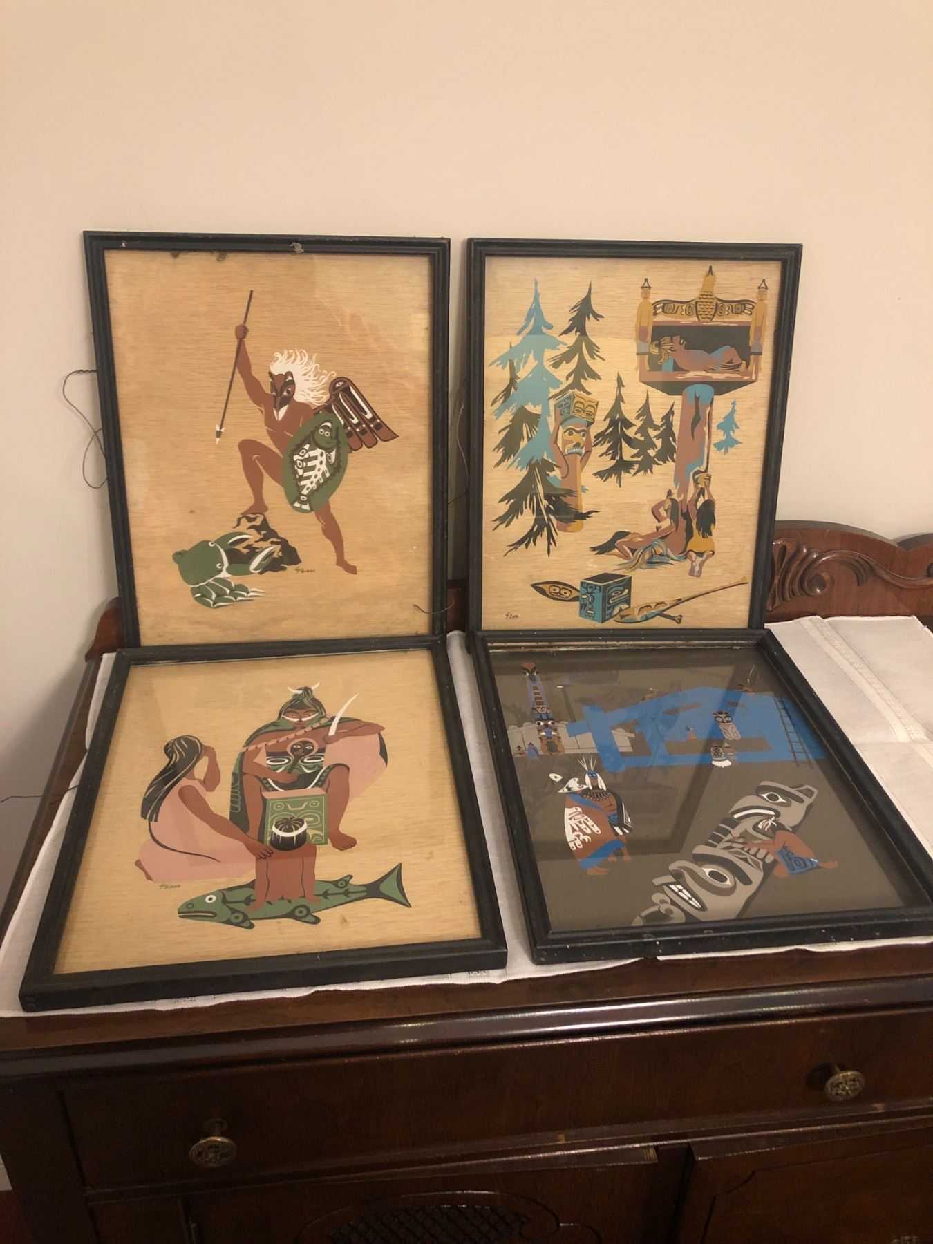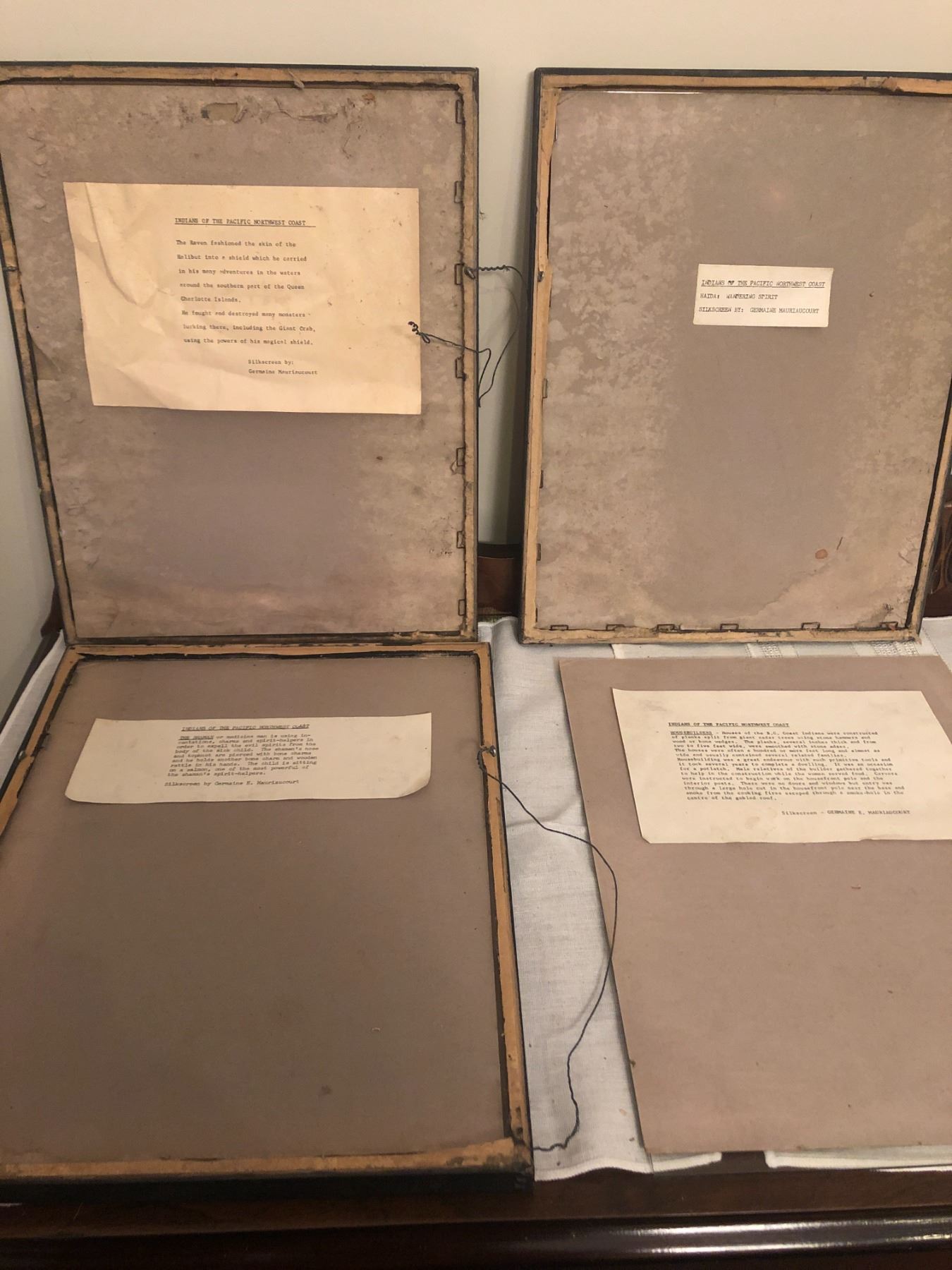 Germaine Mauriacourt Silkscreen Art - All 4 are 14.5" H x 11.5" W. All frames are damaged or broken