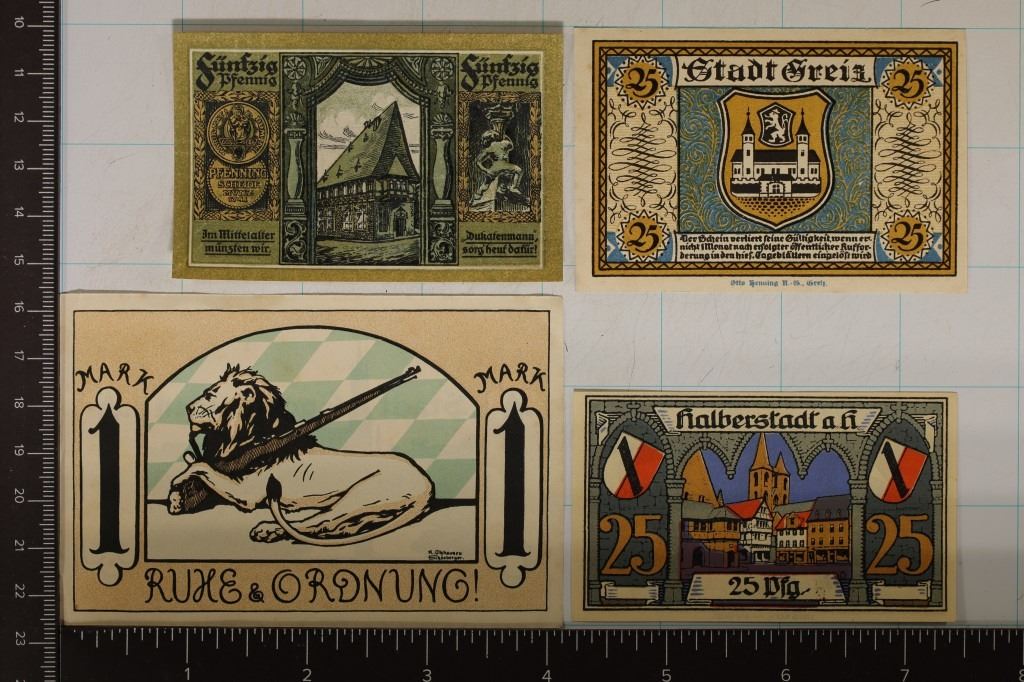 FIVE PFENNIGS, 1920 TWENTY FIVE PFENNIGS AND 1923 FIFTY PFENNIGS, 3 CRISP UNC AND ONE EXTRA FINE