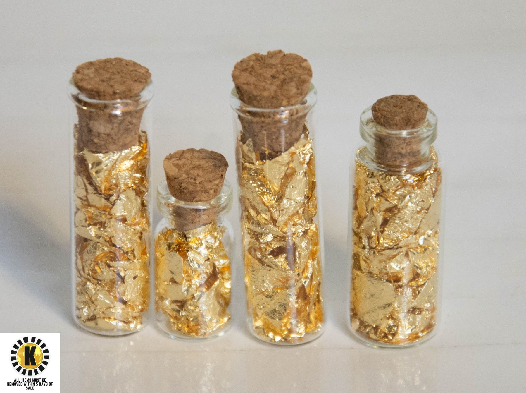 4 GOLD FOIL FLAKES IN GLASS BOTTLES