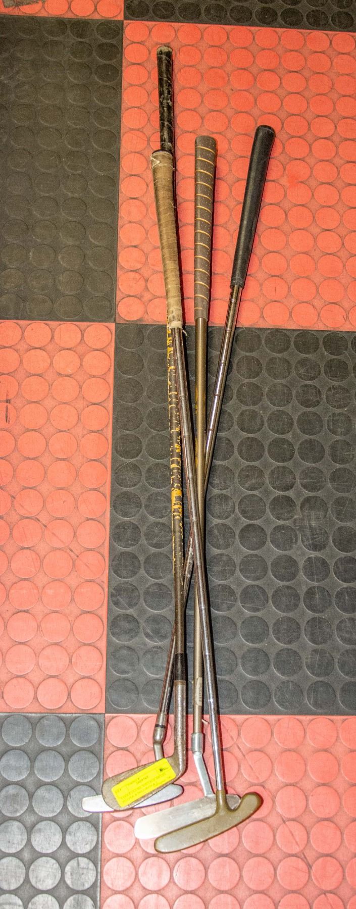 4 GOLF CLUBS, VINTAGE BRASS PUTTER & NO.2 IRON & 2