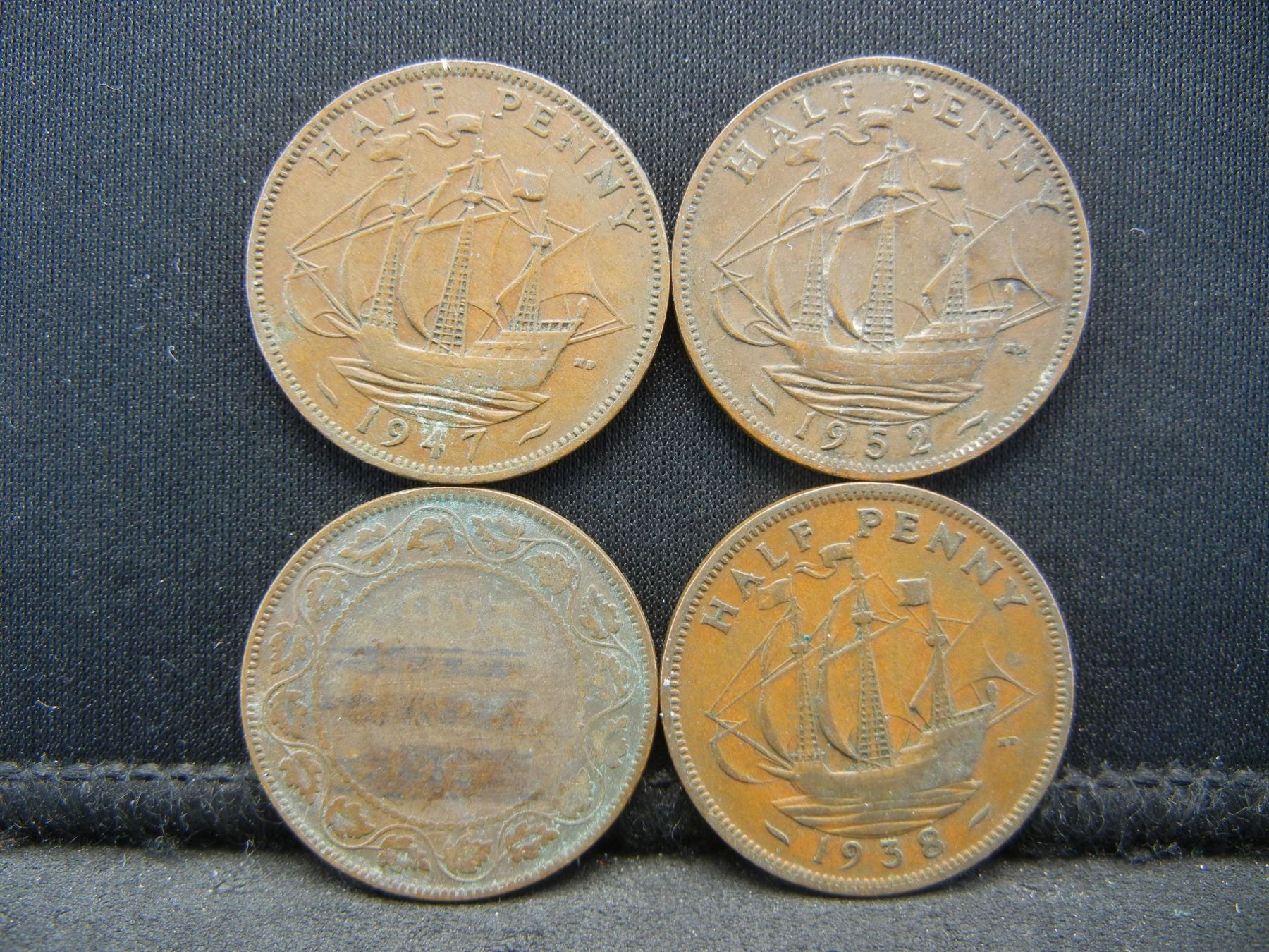 (4) GREAT BRITAIN 1/2 PENNIES (1907/1938/1947/1952)
