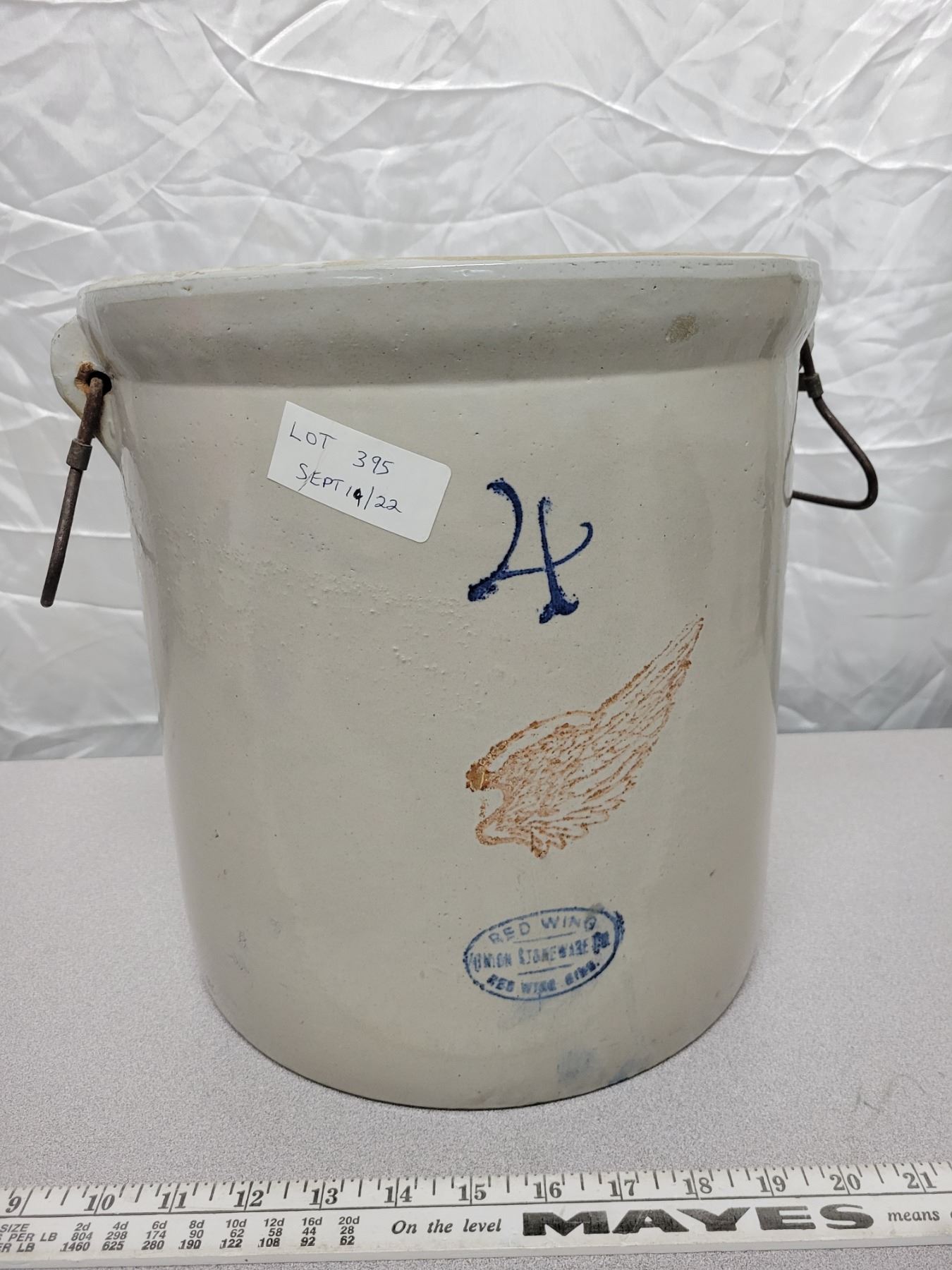 4 Gallon Redwing crock, patent date December 1915 excellent condition