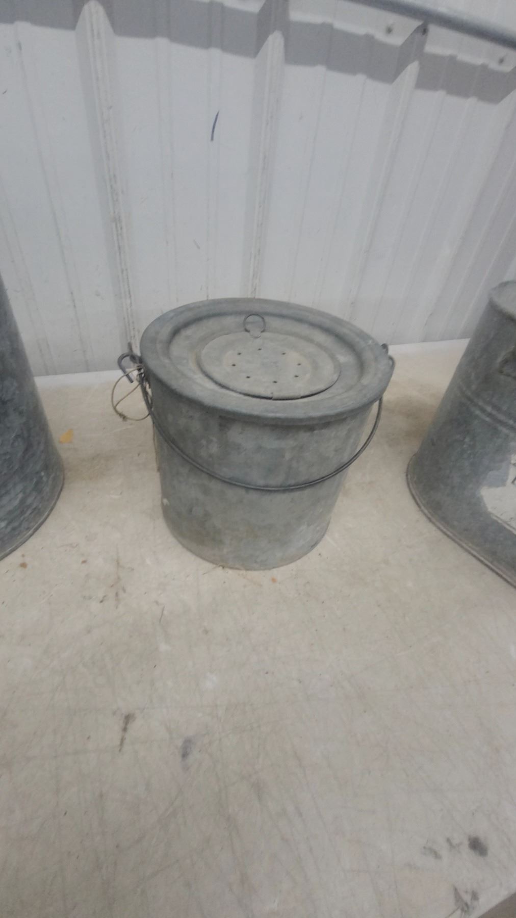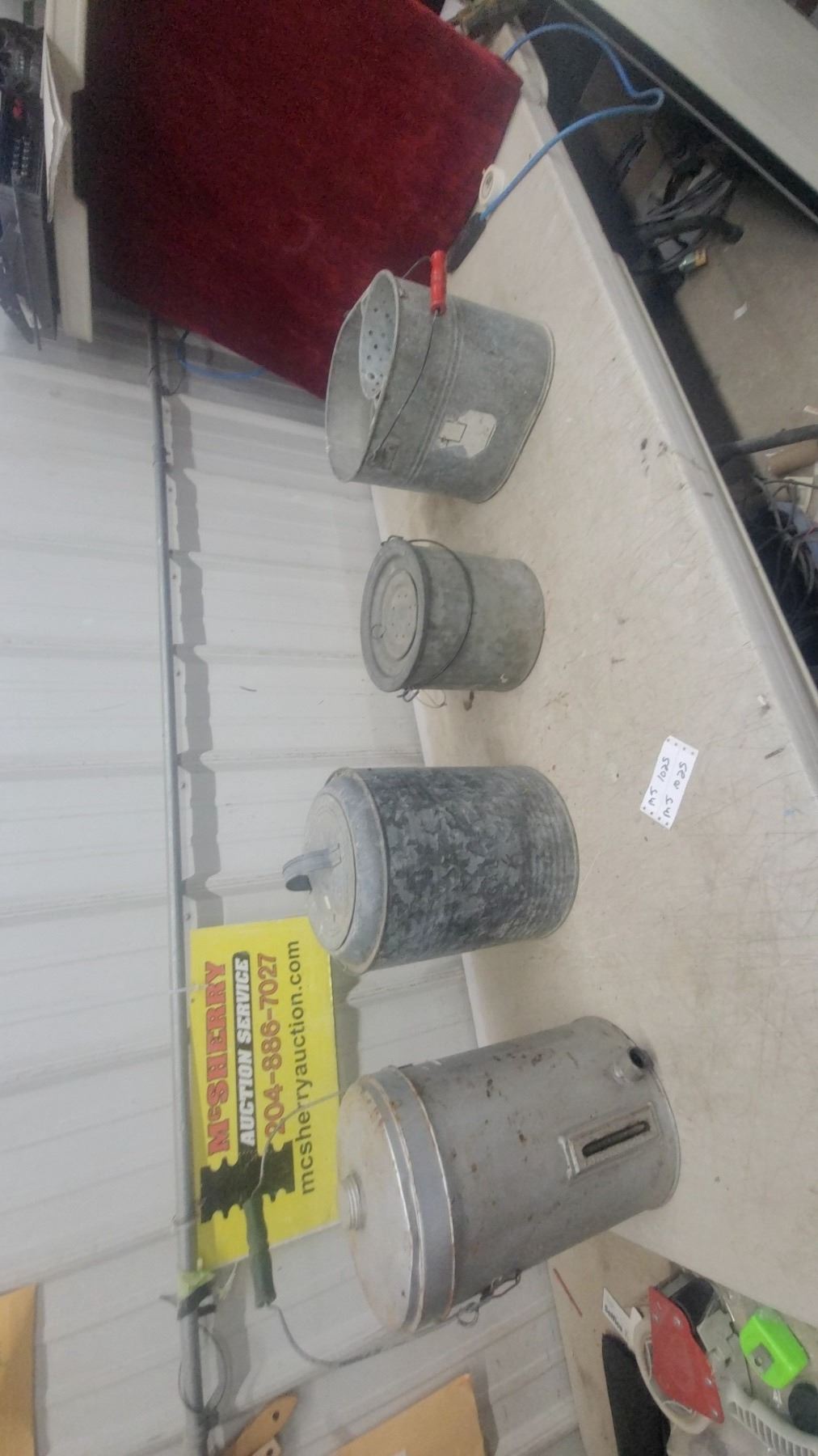 4 Galvanized Metal Buckets and Containers Including Minnow Bucket