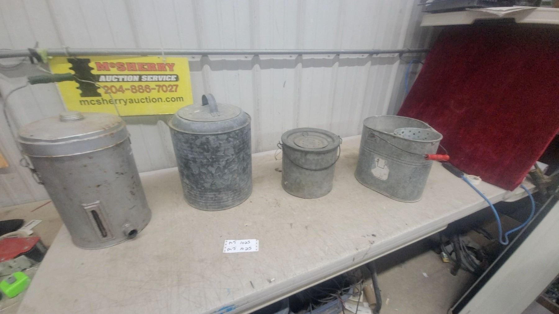4 Galvanized Metal Pails/Buckets Including Minnow Bucket, Various Sizes