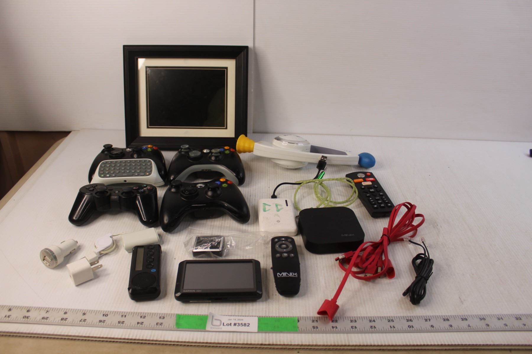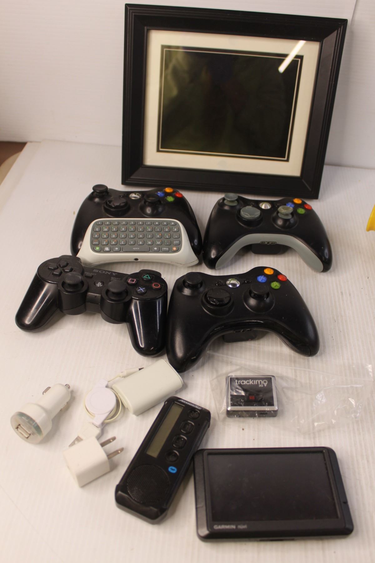 (4) Gaming Consoles, Digital Photo Frame 10.75" x 9" (No Cord), Bop It Game, Garmin Nuvi GPS (No Cord), Misc.