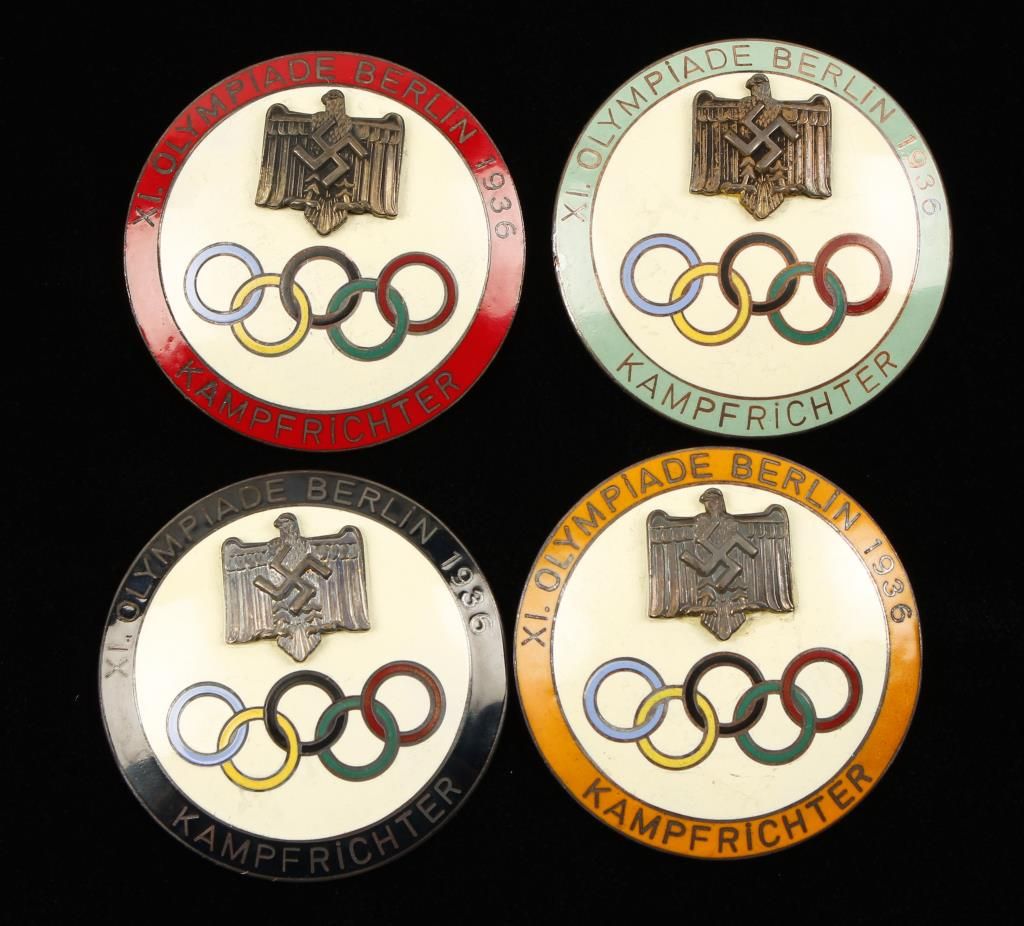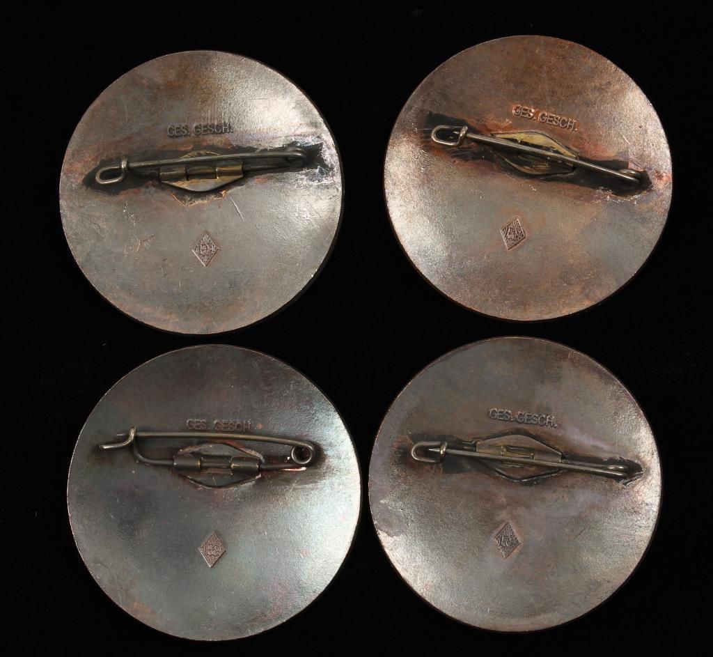 Badges. They measure 1 7/8" in diameter. The reverse side is maker marked 'Ges Gesch PJC'. They all have a thin horizontal pin back. Two piece copper construction with enamel. Offered "as is", we don't guarantee the authenticity of this item, please do your research. All sales are final.