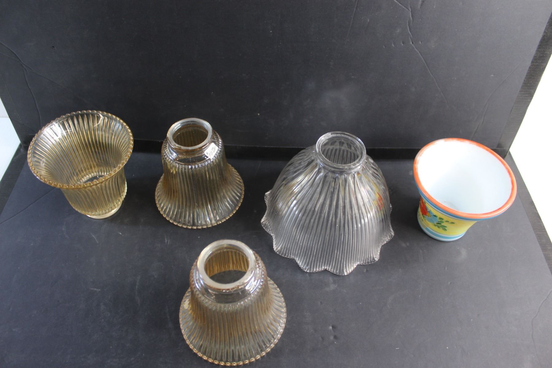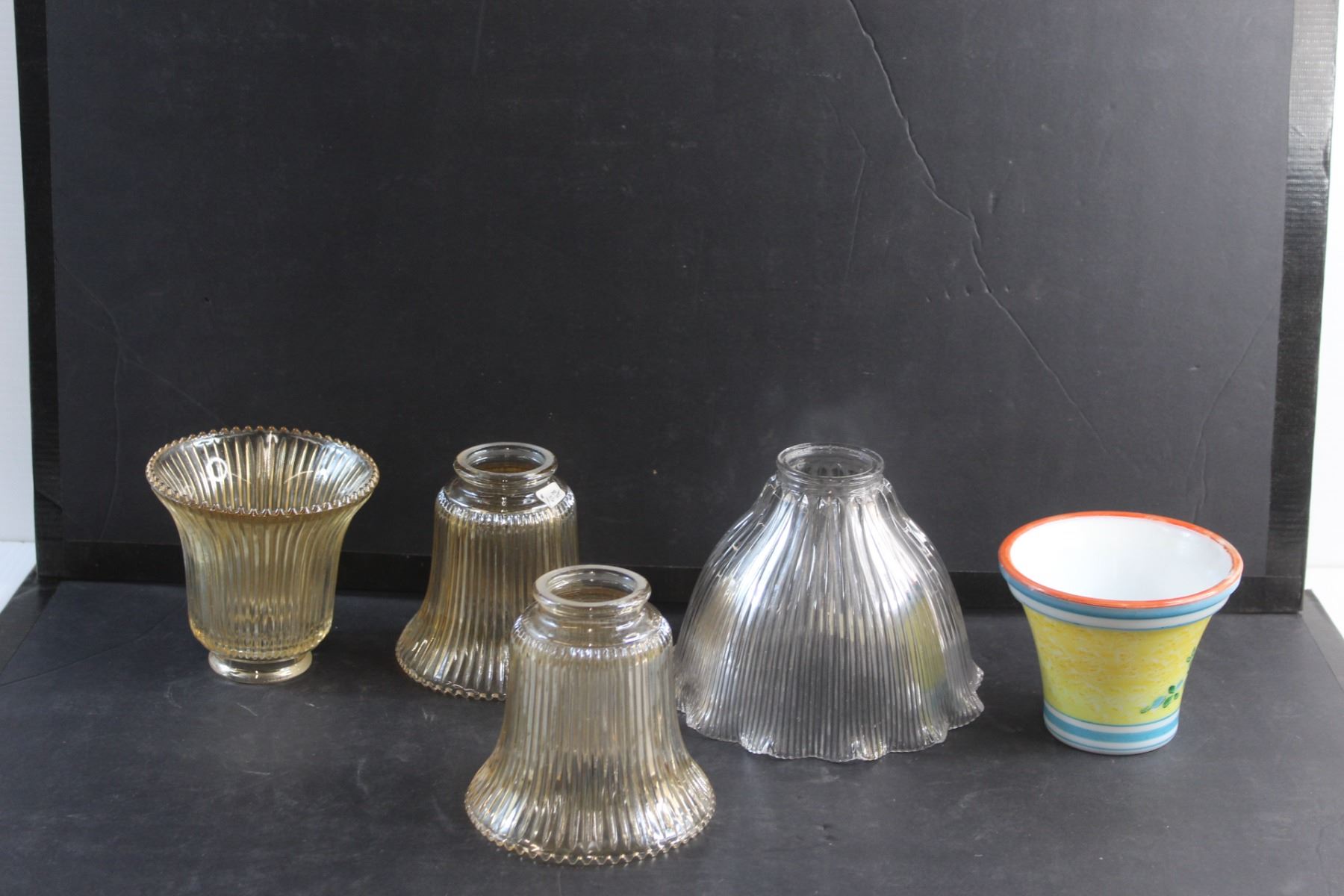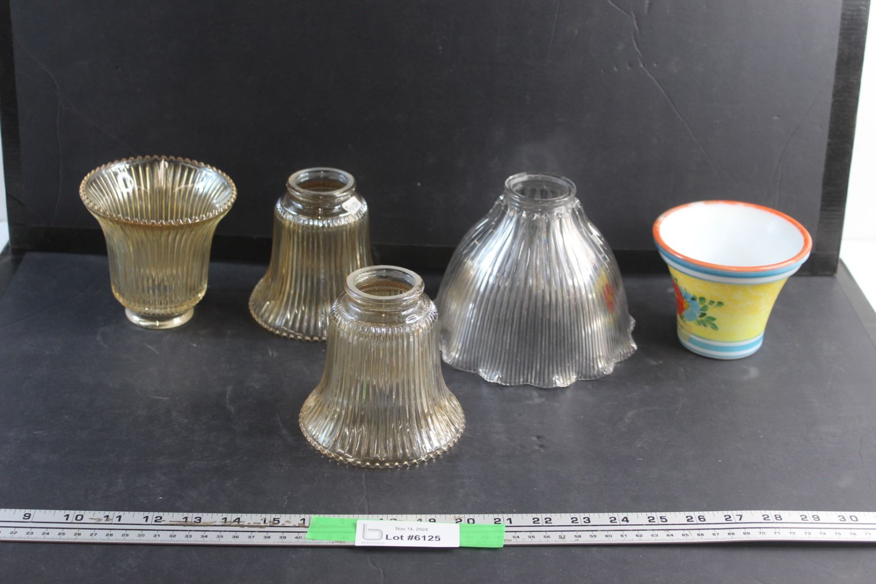 (4) Glass Lamp Shades and Ceramic Floral Pattern Planter