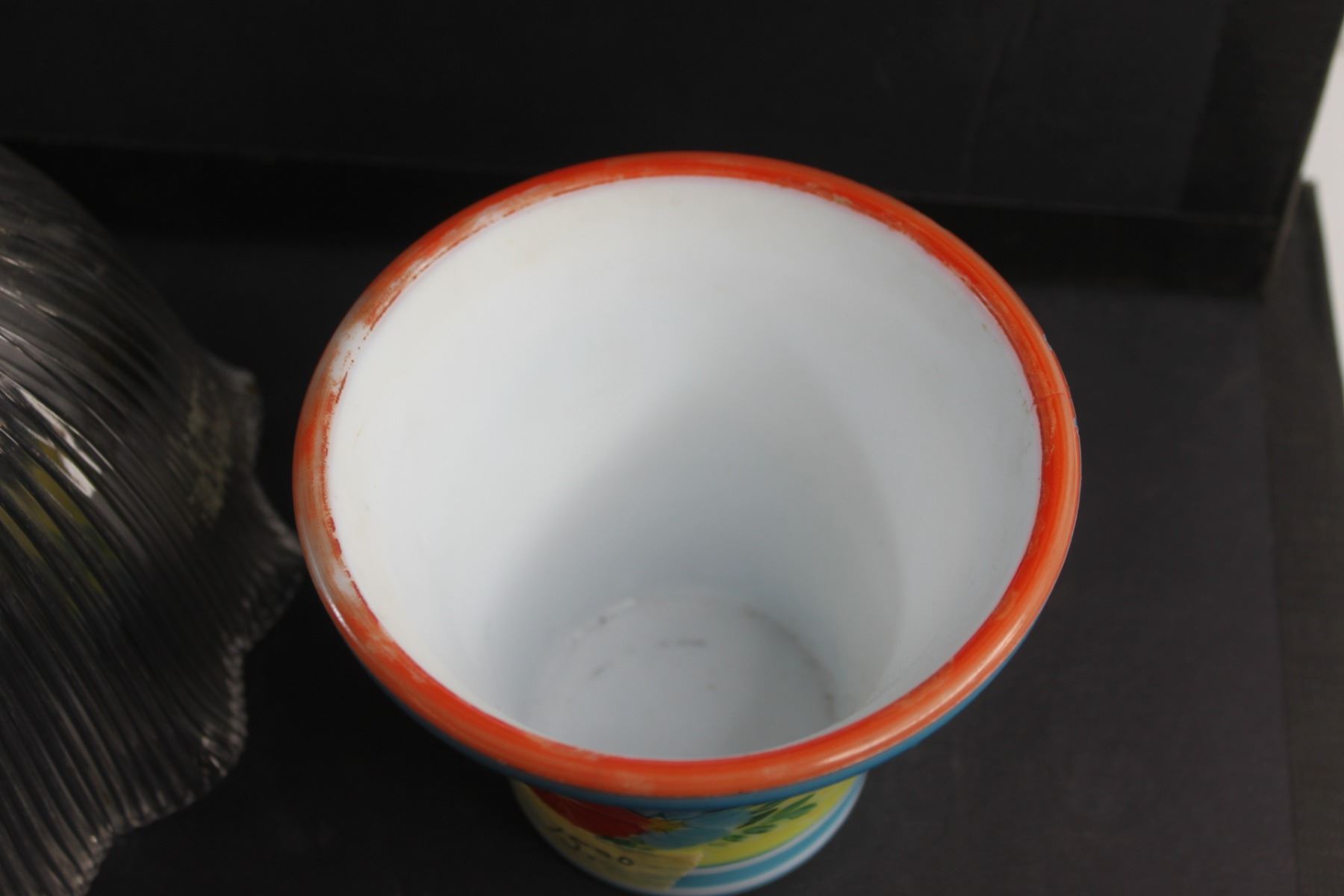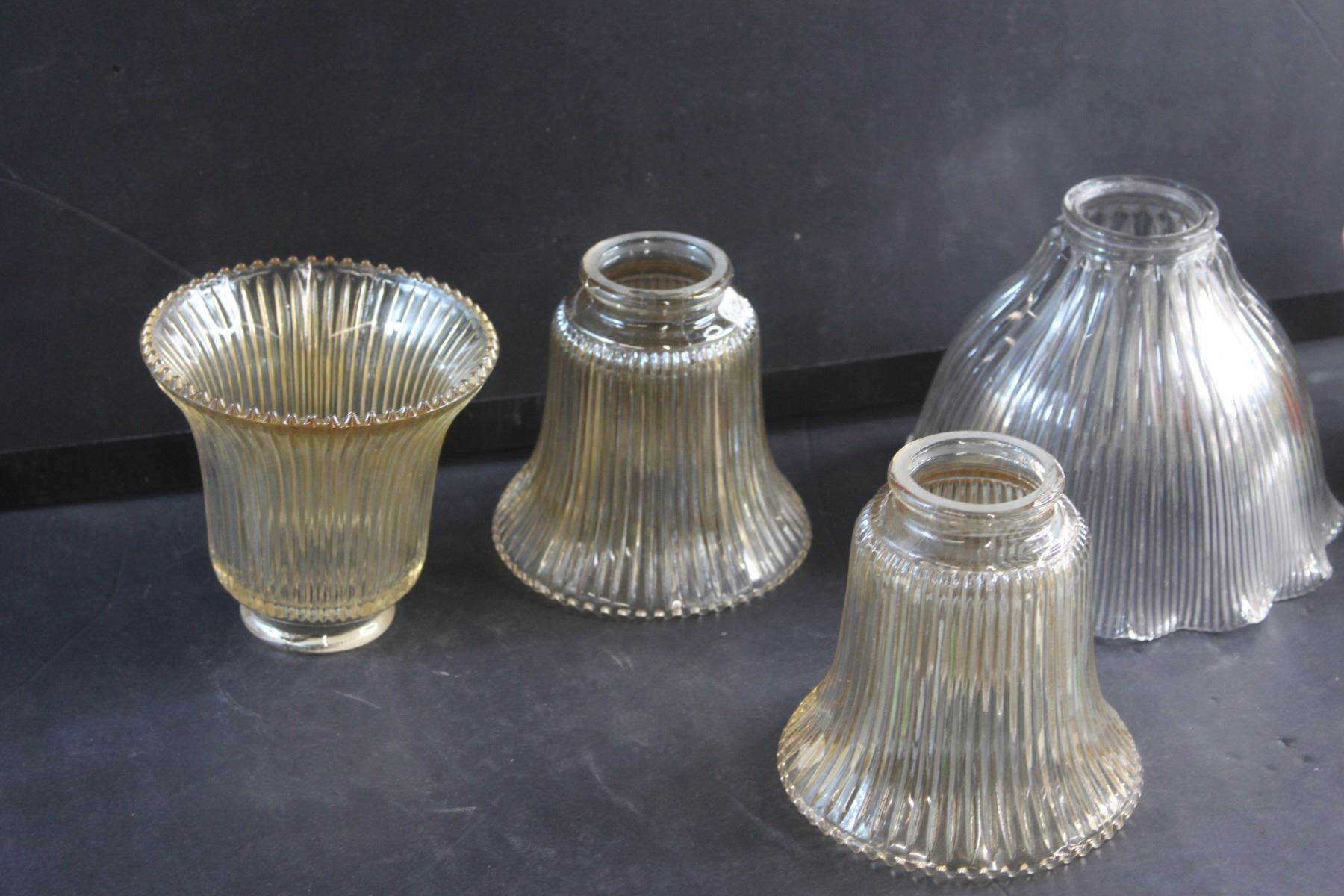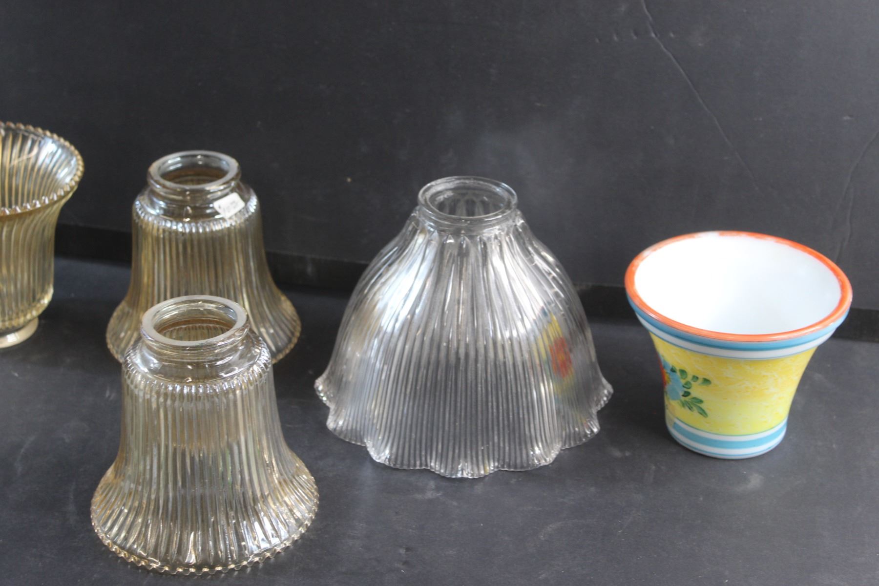 (4) Glass Lamp Shades and Ceramic Floral Pattern Planter